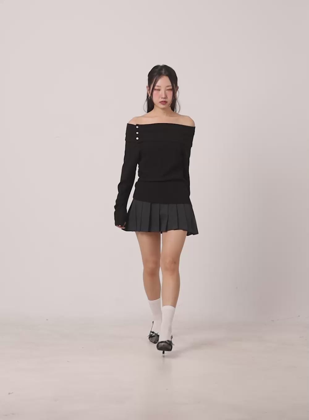 off-shoulder-buttoned-long-sleeve-top-if510 / Black