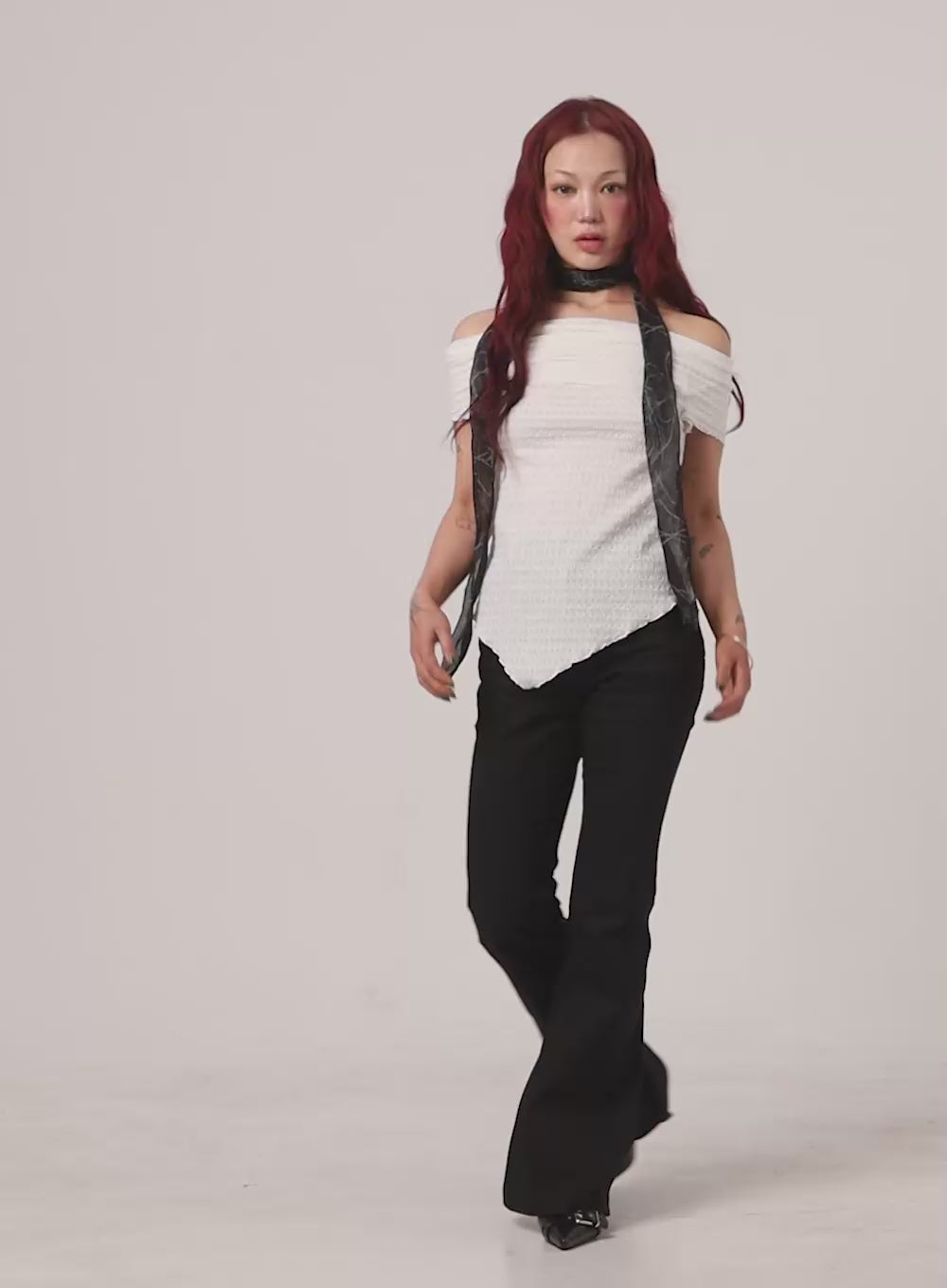 one-shoulder-crop-tank-top-with-scarf-cl404 / White