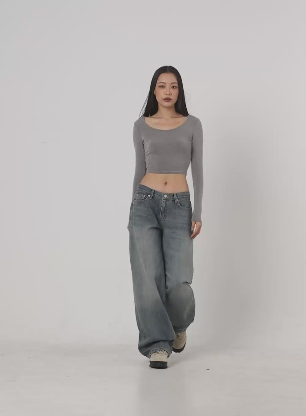 essential-u-neck-long-sleeve-top-cm519 / Gray