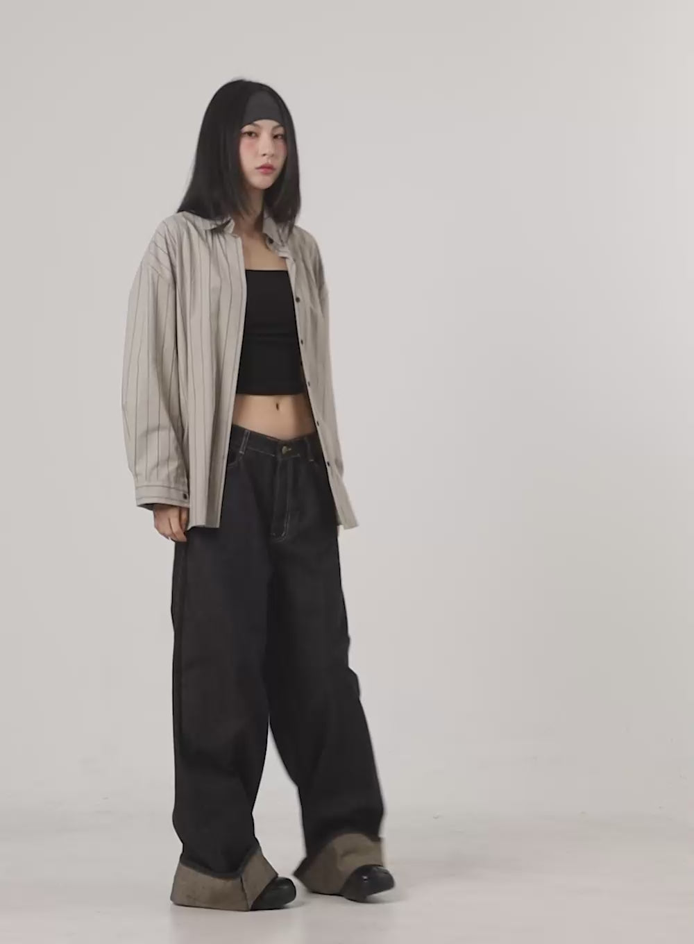 delilah-pin-tuck-washed-denim-baggy-jeans-co424 / Black