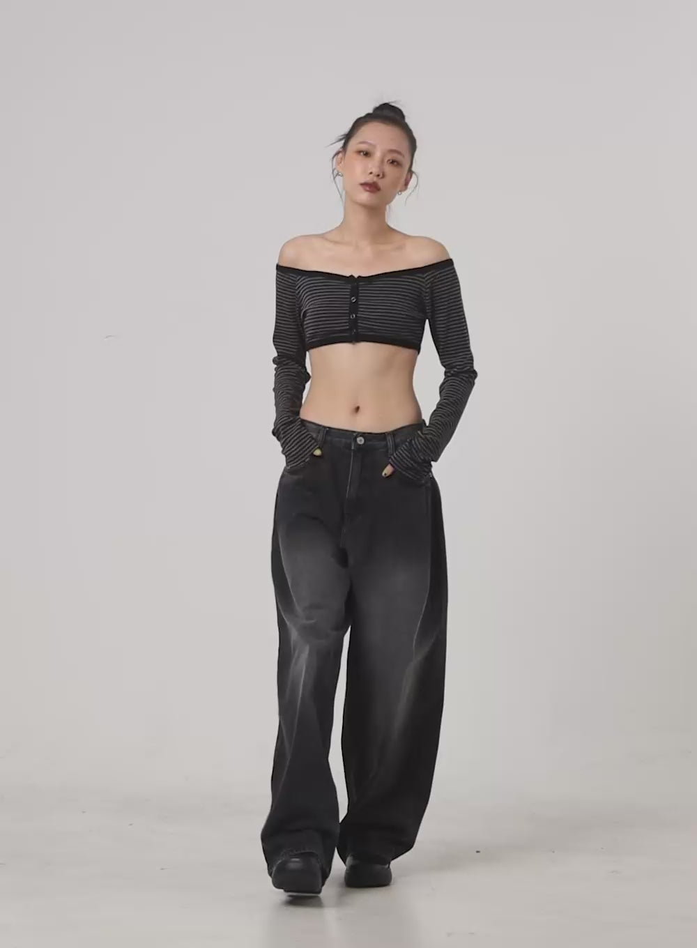 skyla-washed-wide-leg-baggy-jeans-if511 / Black