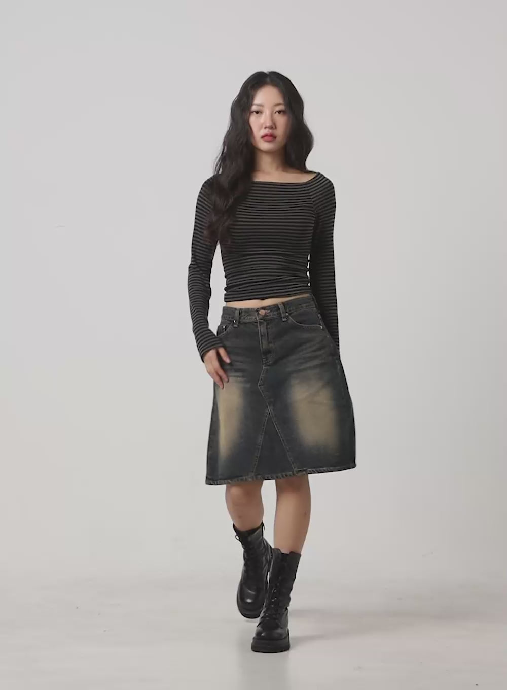 stripe-square-neck-long-sleeve-cg423 / Dark gray