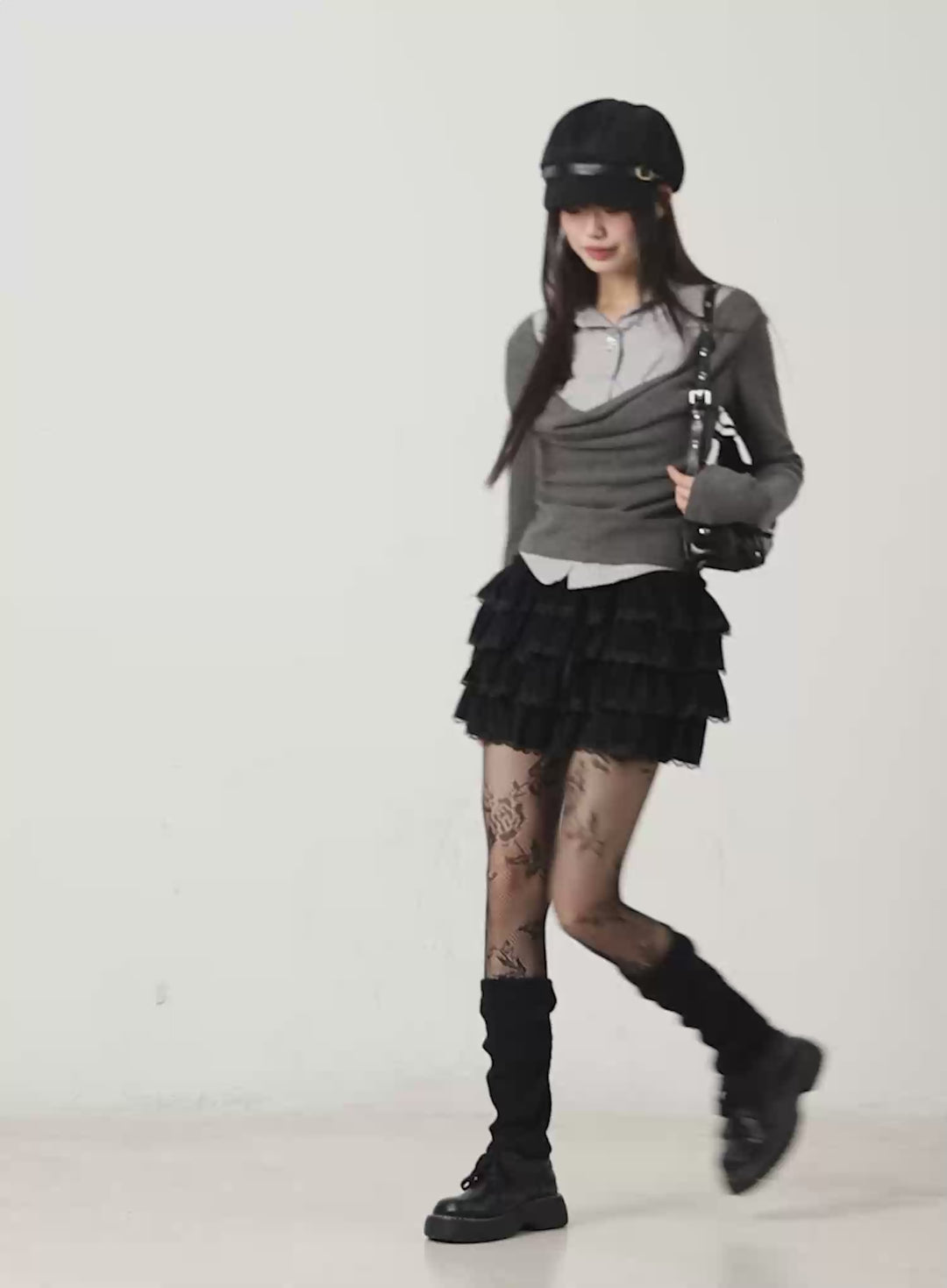 low-rise-lace-layered-mini-skirt-cn524 / Black