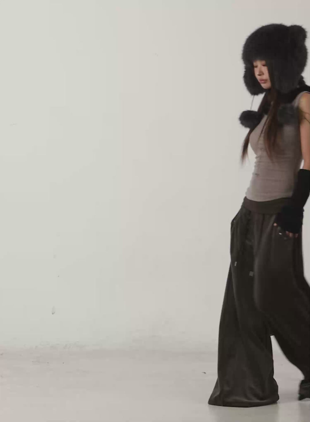 fleece-wide-leg-sweatpants-cj506 / Brown