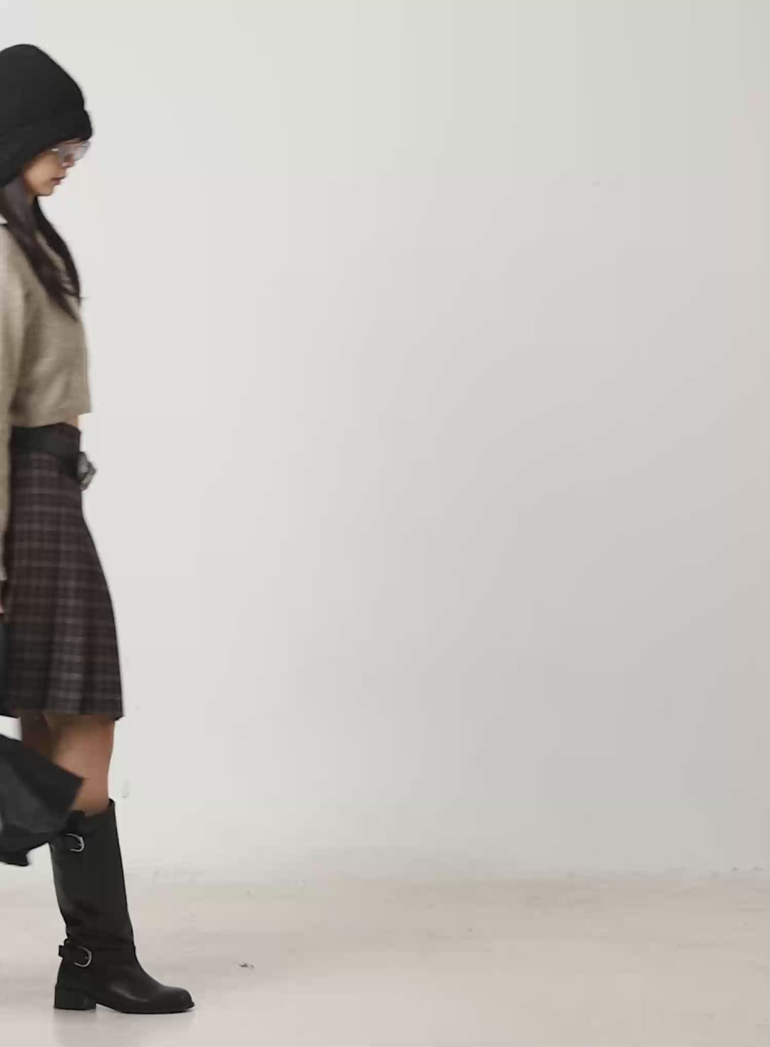 cropped-crewneck-knit-top-ij502 / Beige