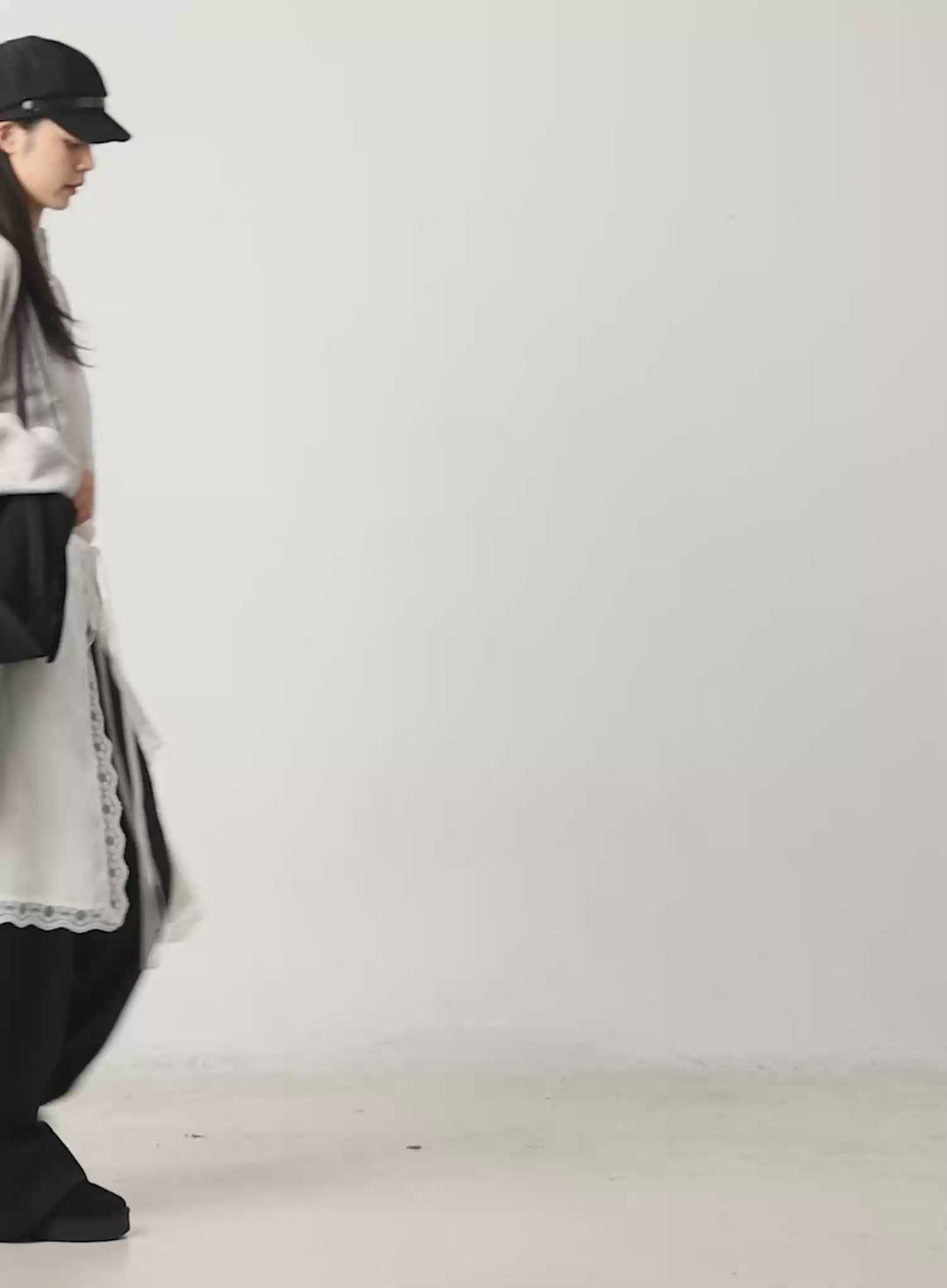 The puffer jacket, styled with ski goggles and chunky sneakers, effortlessly balances functionality and edge. Its clean lines and monochromatic palette create a Y3K look that’s perfect for winter activities or insta-worthy photos. This ensemble encapsulates the collection’s focus on merging comfort with cutting-edge picks.