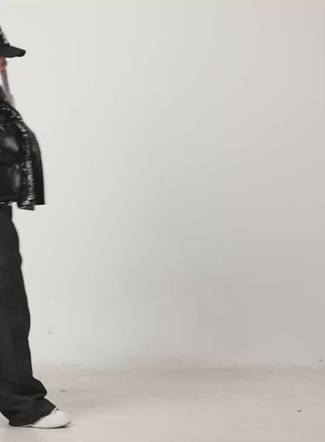 A cropped black bomber jacket, faux leather shorts, and sleek ankle boots combine to form a powerful statement look. Paired with ski poles and a bold attitude, this outfit brings a cyberpunk-inspired twist to traditional winterwear. Designed for those who embrace individuality, it’s the perfect choice for making a locked eyes on the slopes or beyond.