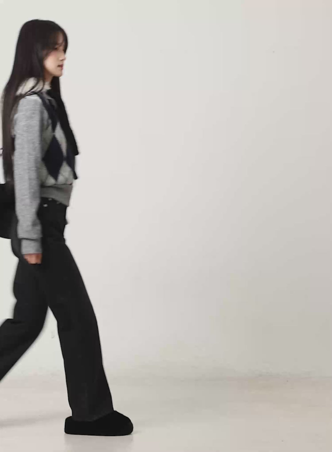 argyle-pattern-knit-zip-up-sweater-cd523 / Gray