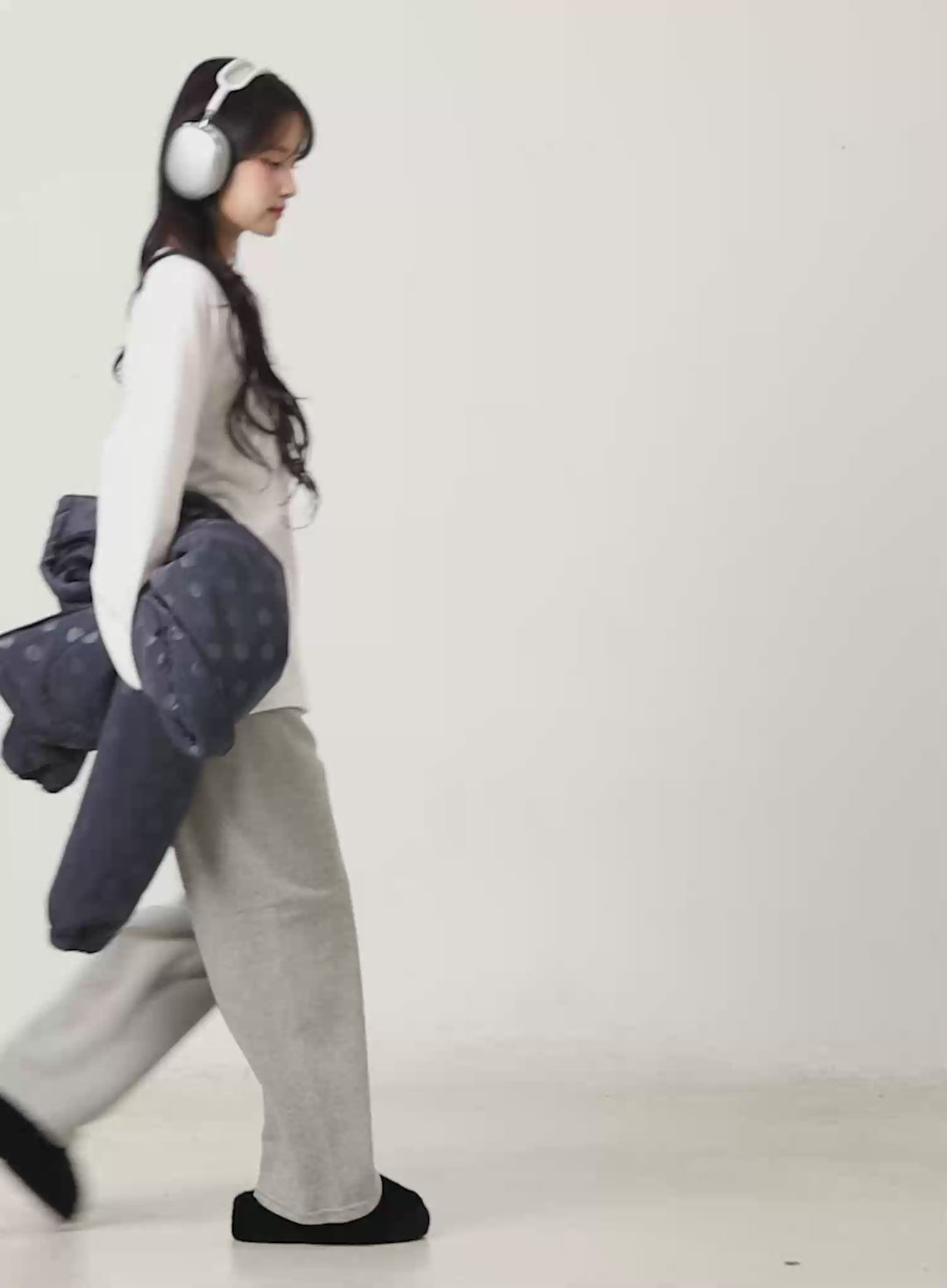 The puffer jacket, styled with ski goggles and chunky sneakers, effortlessly balances functionality and edge. Its clean lines and monochromatic palette create a Y3K look that’s perfect for winter activities or insta-worthy photos. This ensemble encapsulates the collection’s focus on merging comfort with cutting-edge picks.