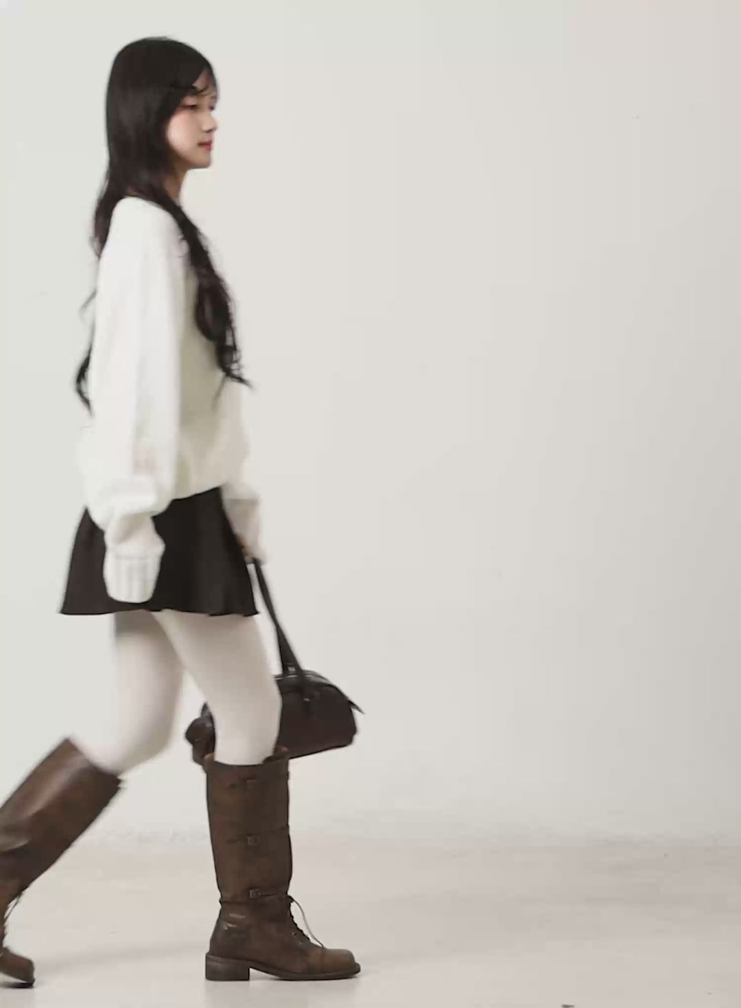 A cropped black bomber jacket, faux leather shorts, and sleek ankle boots combine to form a powerful statement look. Paired with ski poles and a bold attitude, this outfit brings a cyberpunk-inspired twist to traditional winterwear. Designed for those who embrace individuality, it’s the perfect choice for making a locked eyes on the slopes or beyond.