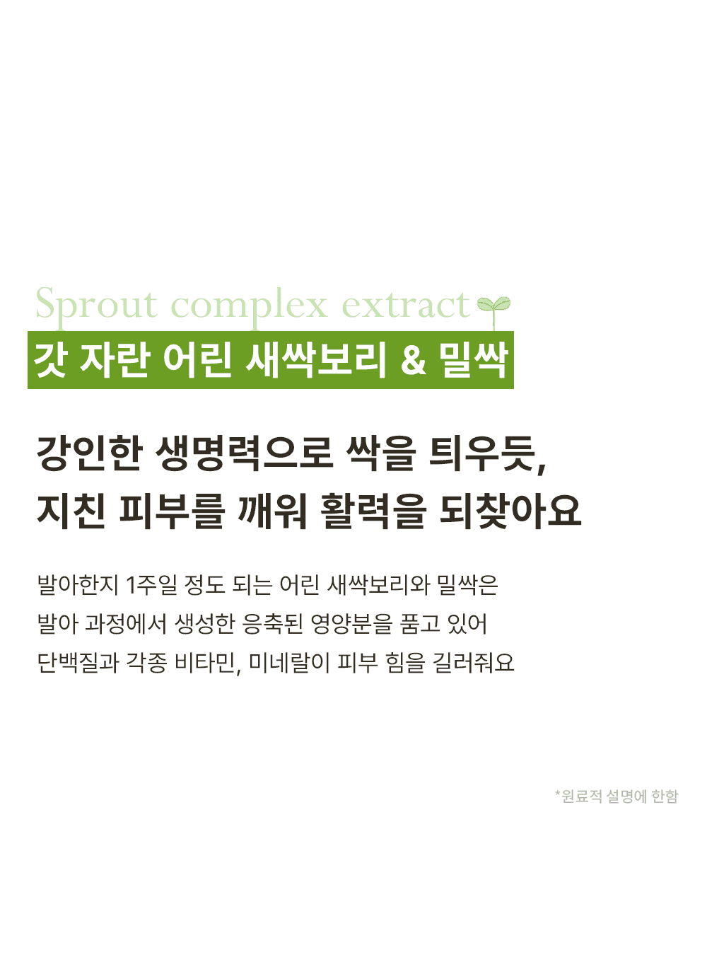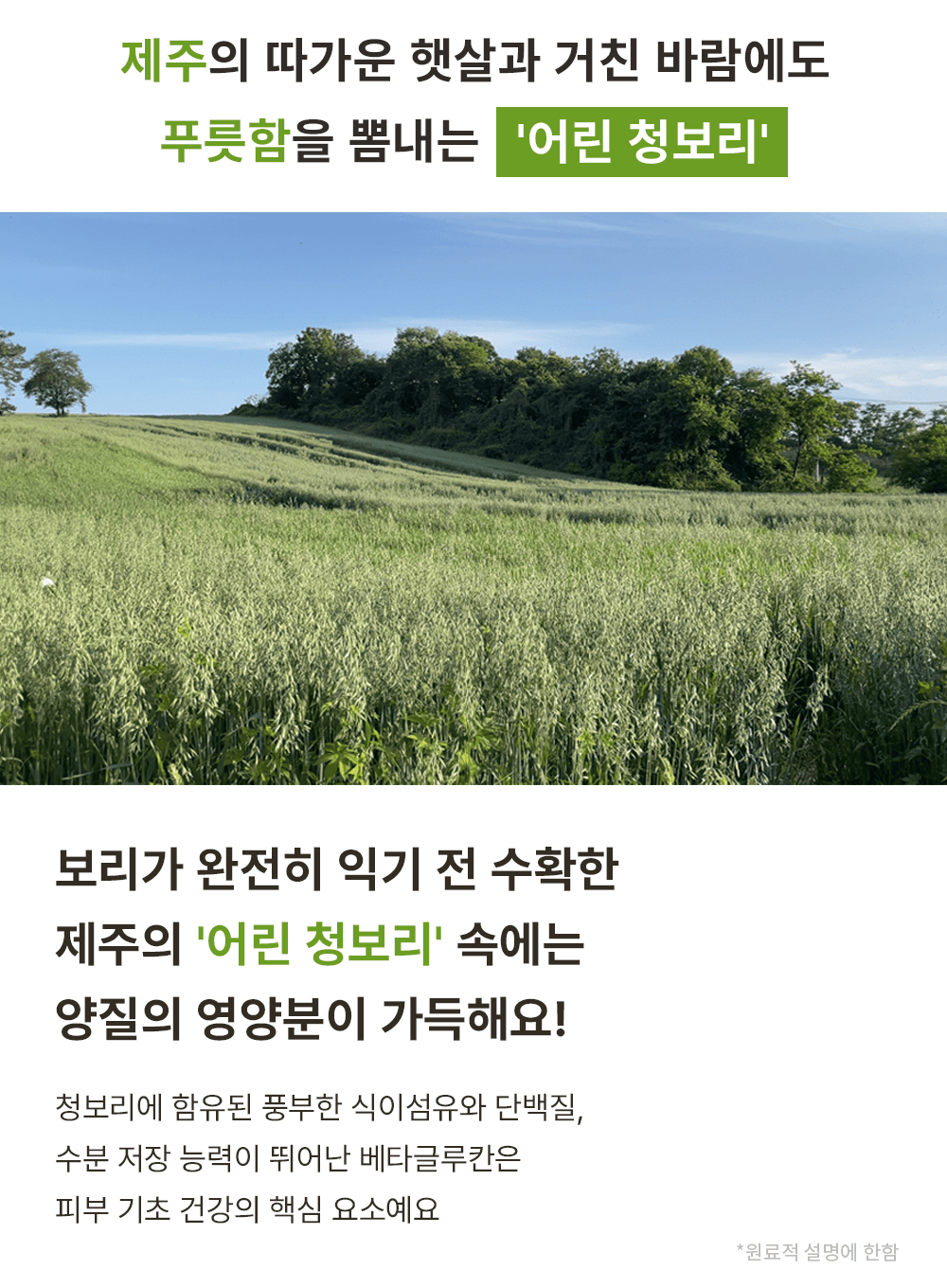 • Delivers deep hydration with 72% Jeju green barley extract and the nutrition of grains, filling and smoothing the skin texture.