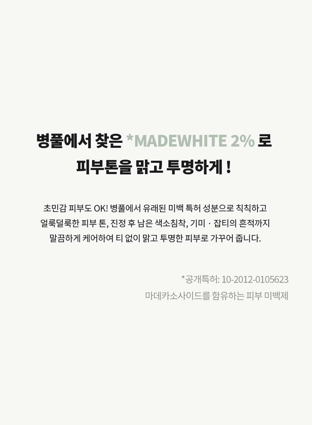 - Contains Centella Asiatica extract and Madewhite to calm the skin and brighten the complexion.