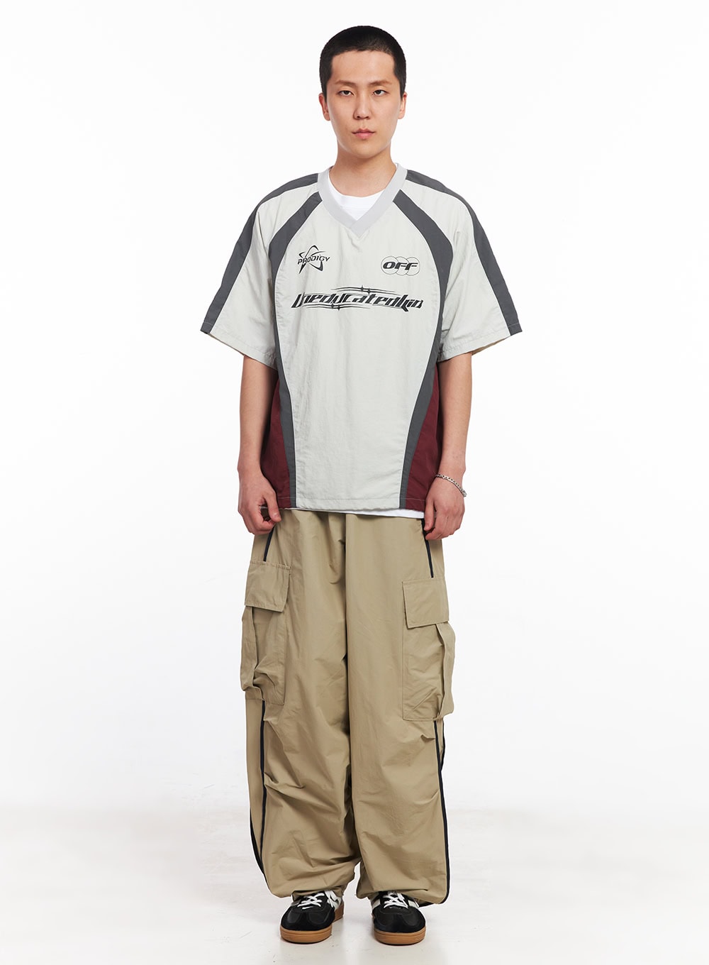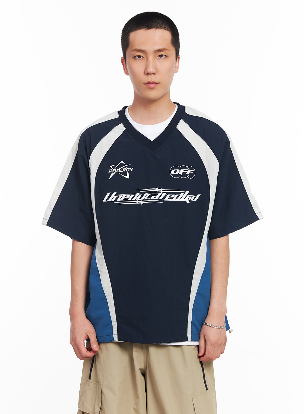Men's Nylon Graphic V-Neck T-Shirt IU512