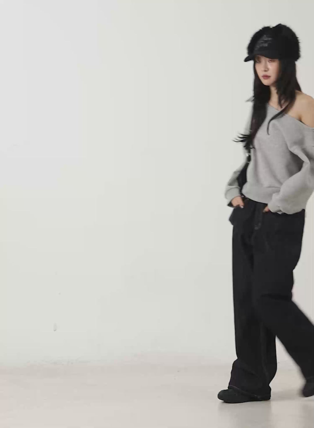 off-shoulder-crop-sweatshirt-cn510 / Black