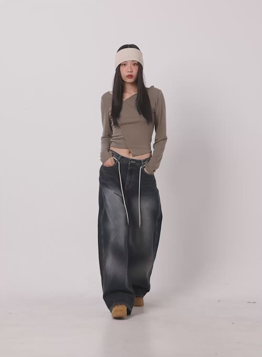 vivian-washed-cotton-baggy-jeans-cd409 / Dark blue