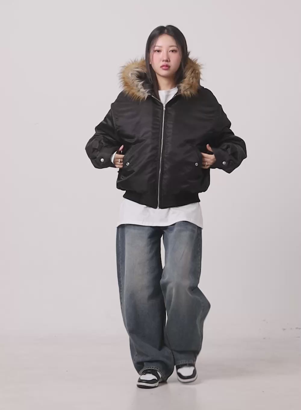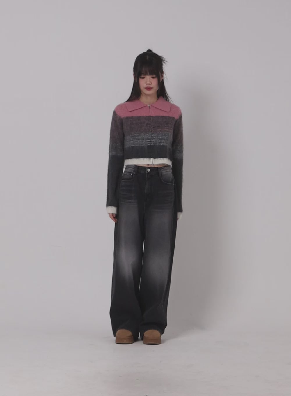 denim-mid-waist-pocket-wide-leg-jeans-cj415 / Black