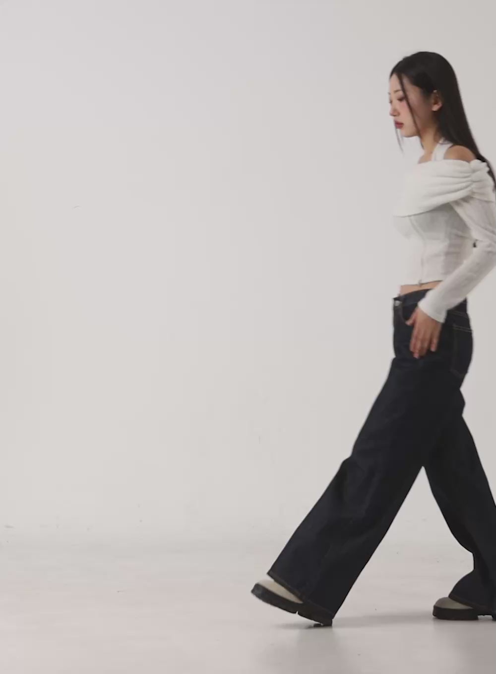 off-shoulder-asymmetric-long-sleeve-top-if510 / Dark blue