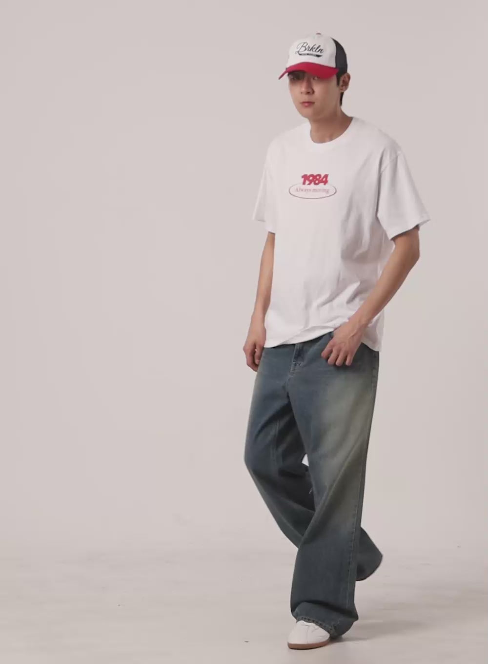 Men's Lettering Round Neck T-Shirt (White) IU418