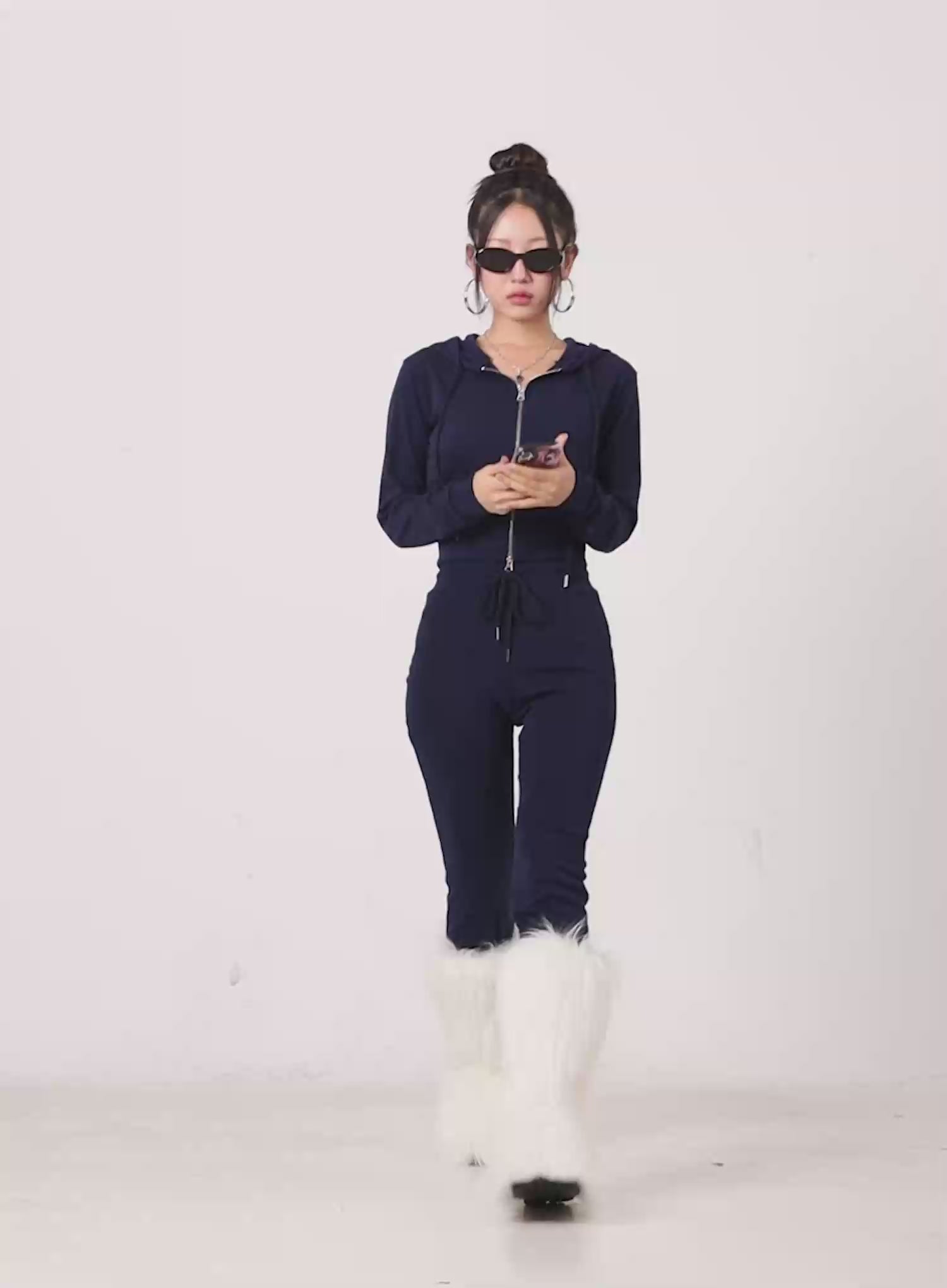 Model is wearing size S/M and the color Dark blue.