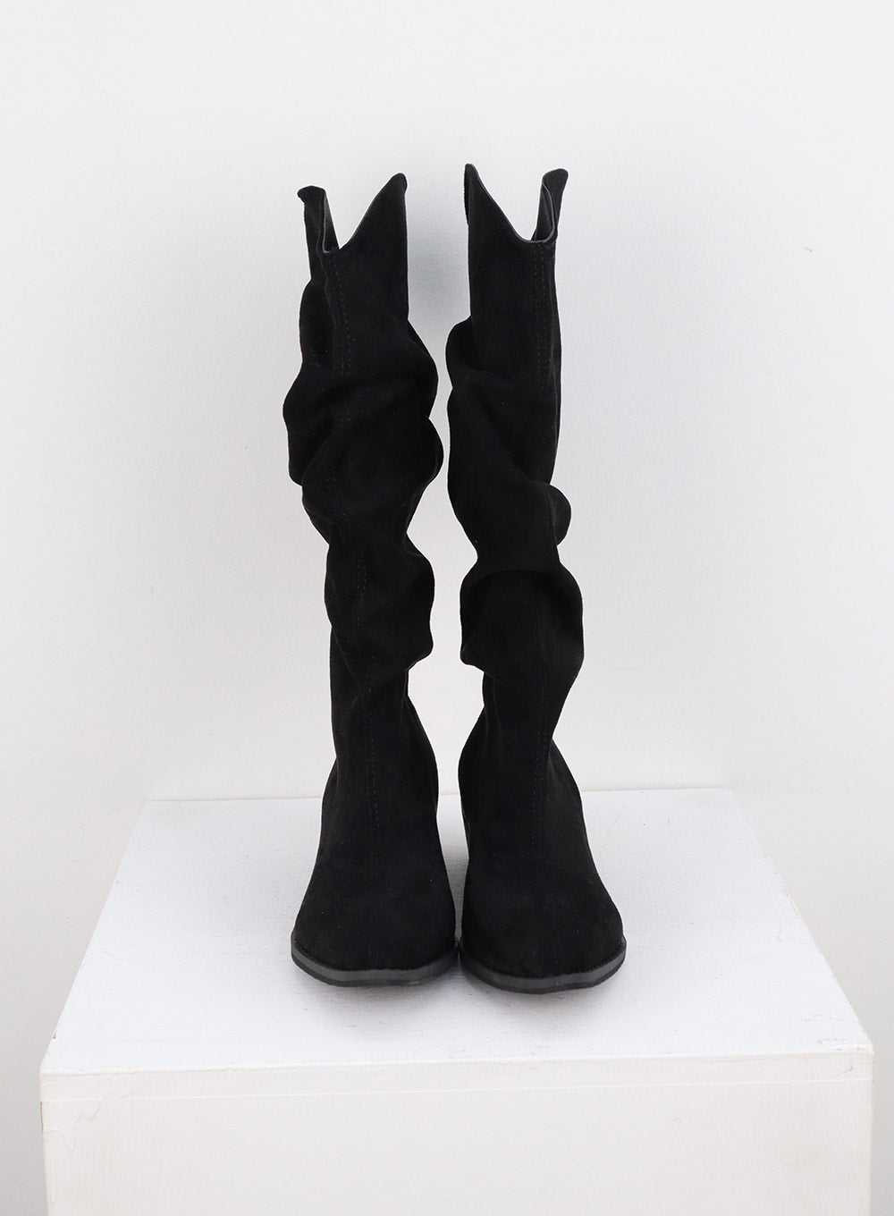 Ruched Faux Leather Long Boots CO313