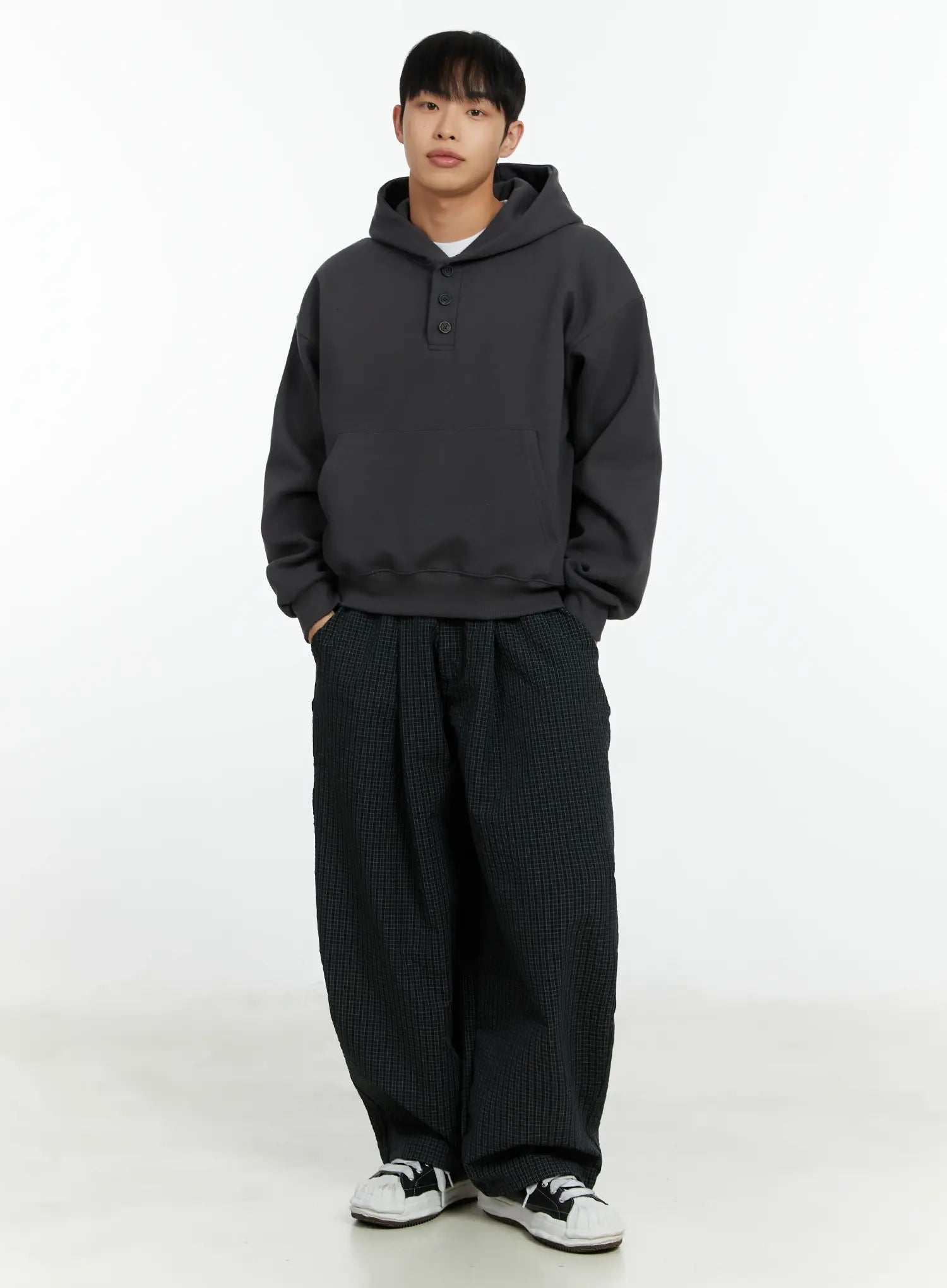 Men's Cropped Henley Hoodie IF511