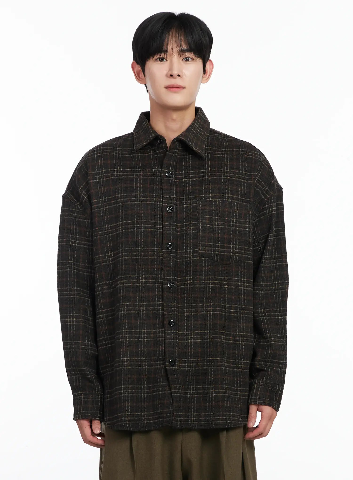 Men's Ueban Wool Checkered Long Sleeve Jacket IJ521