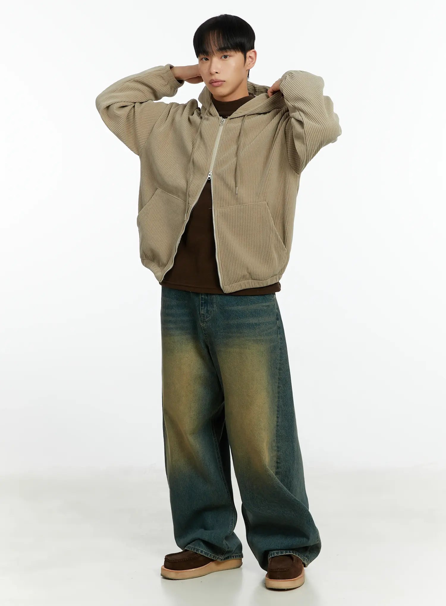 Model is wearing size M/L and the color Brown.