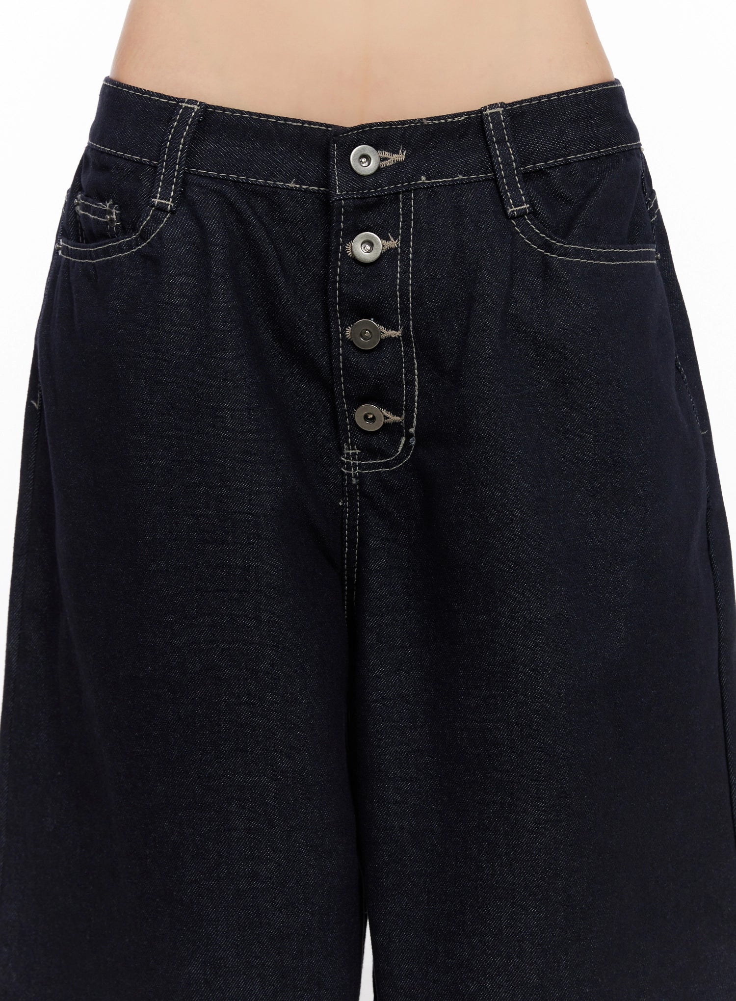 Jazlyn Non-Fade Button Wide Leg Jeans IN503