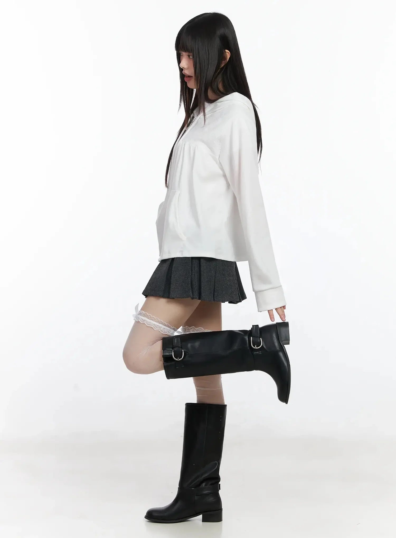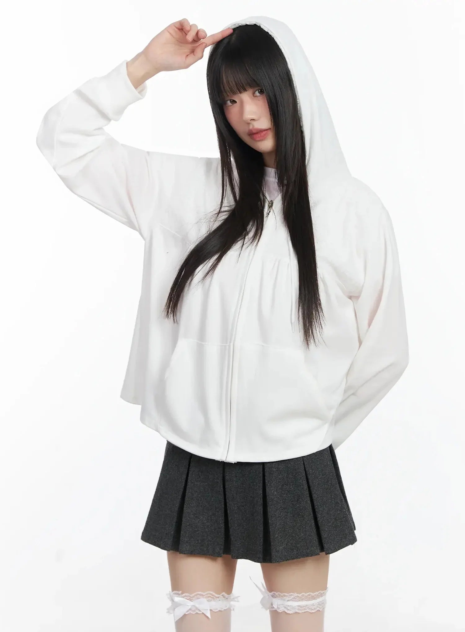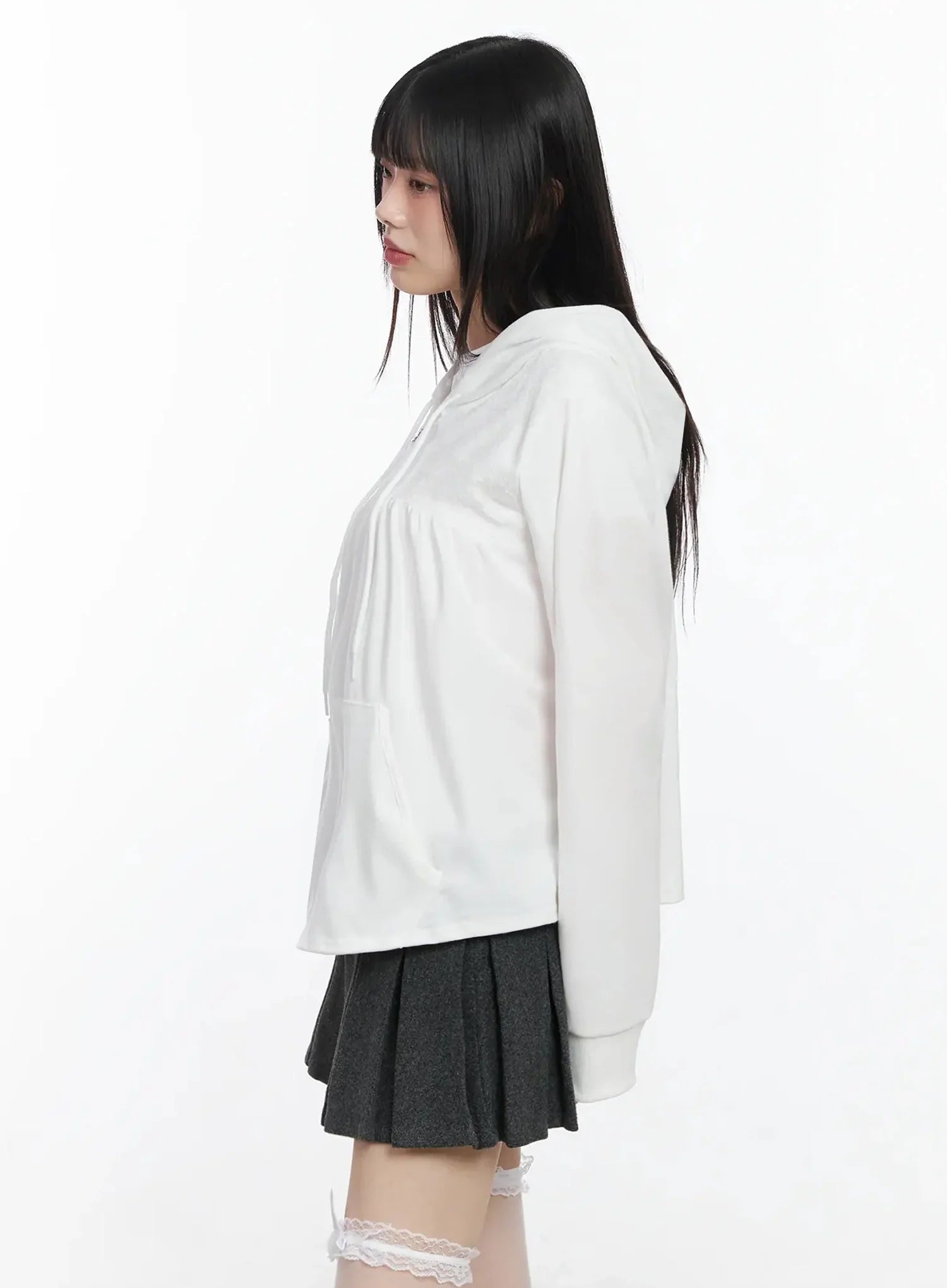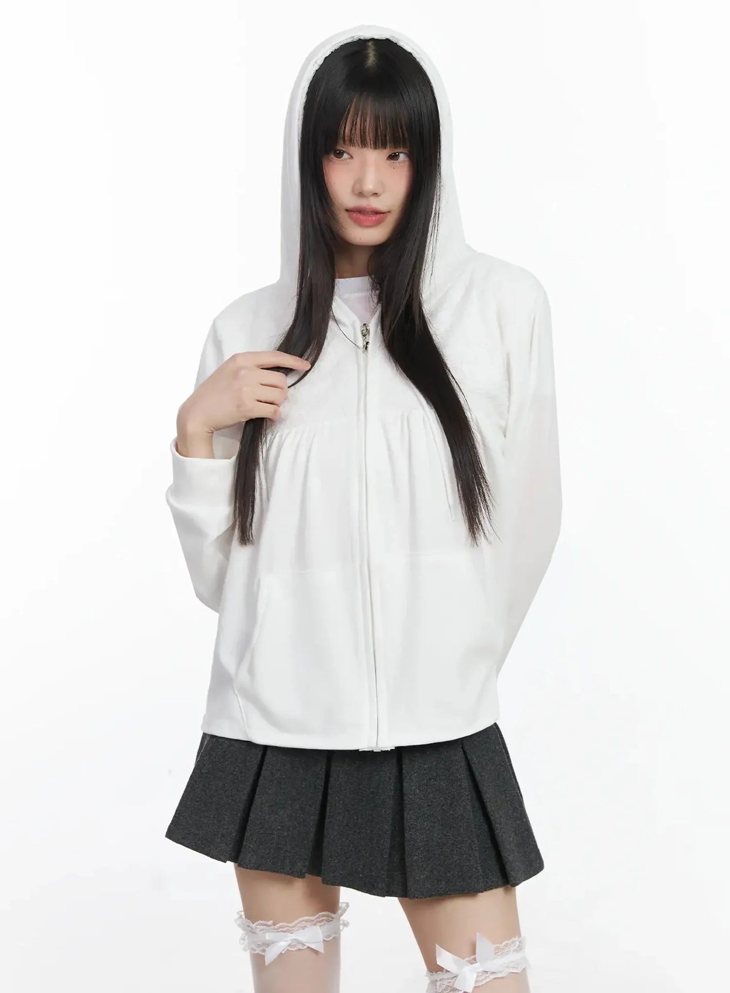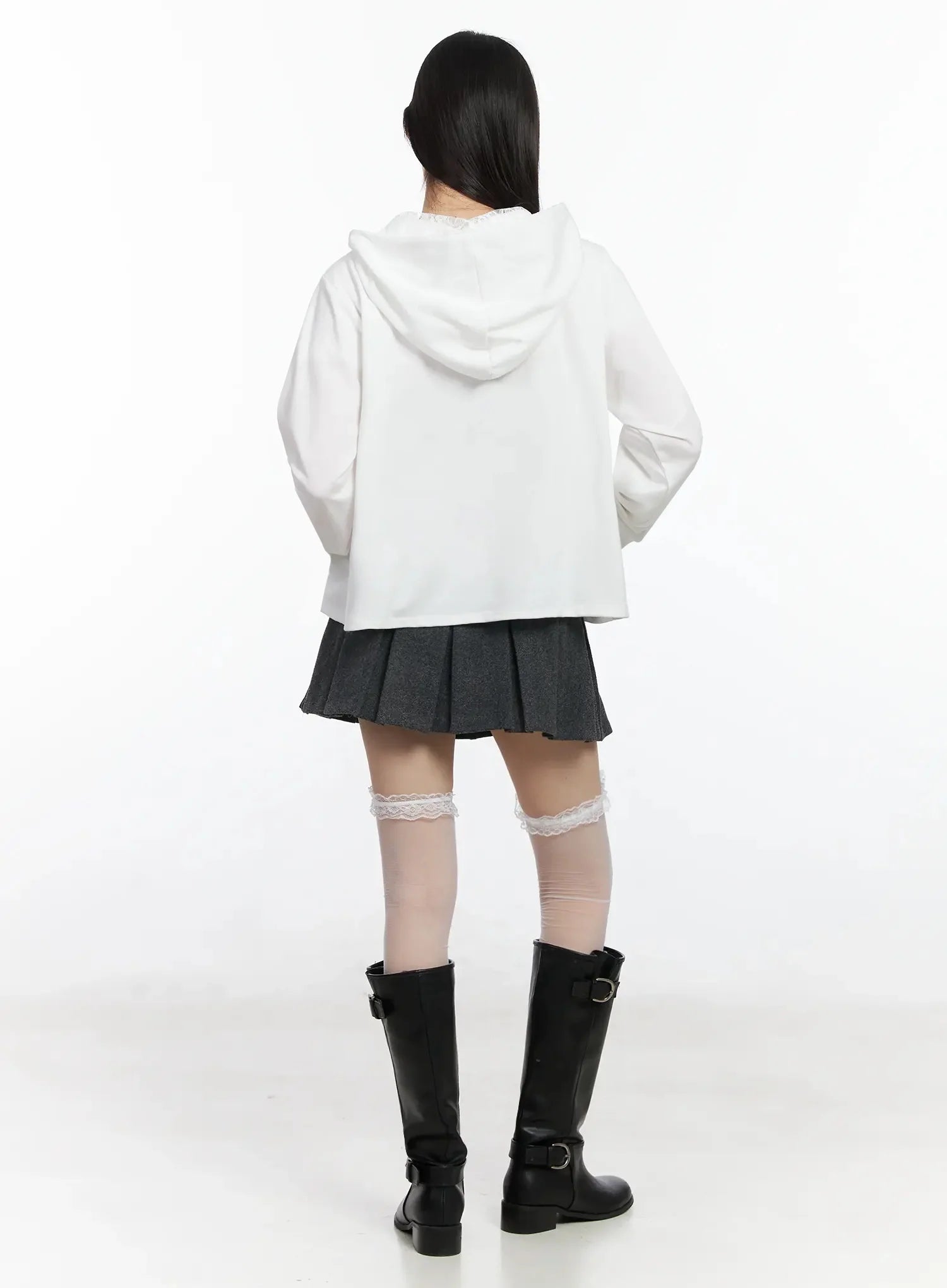Lace Accent Zip-Up Hoodie IF505