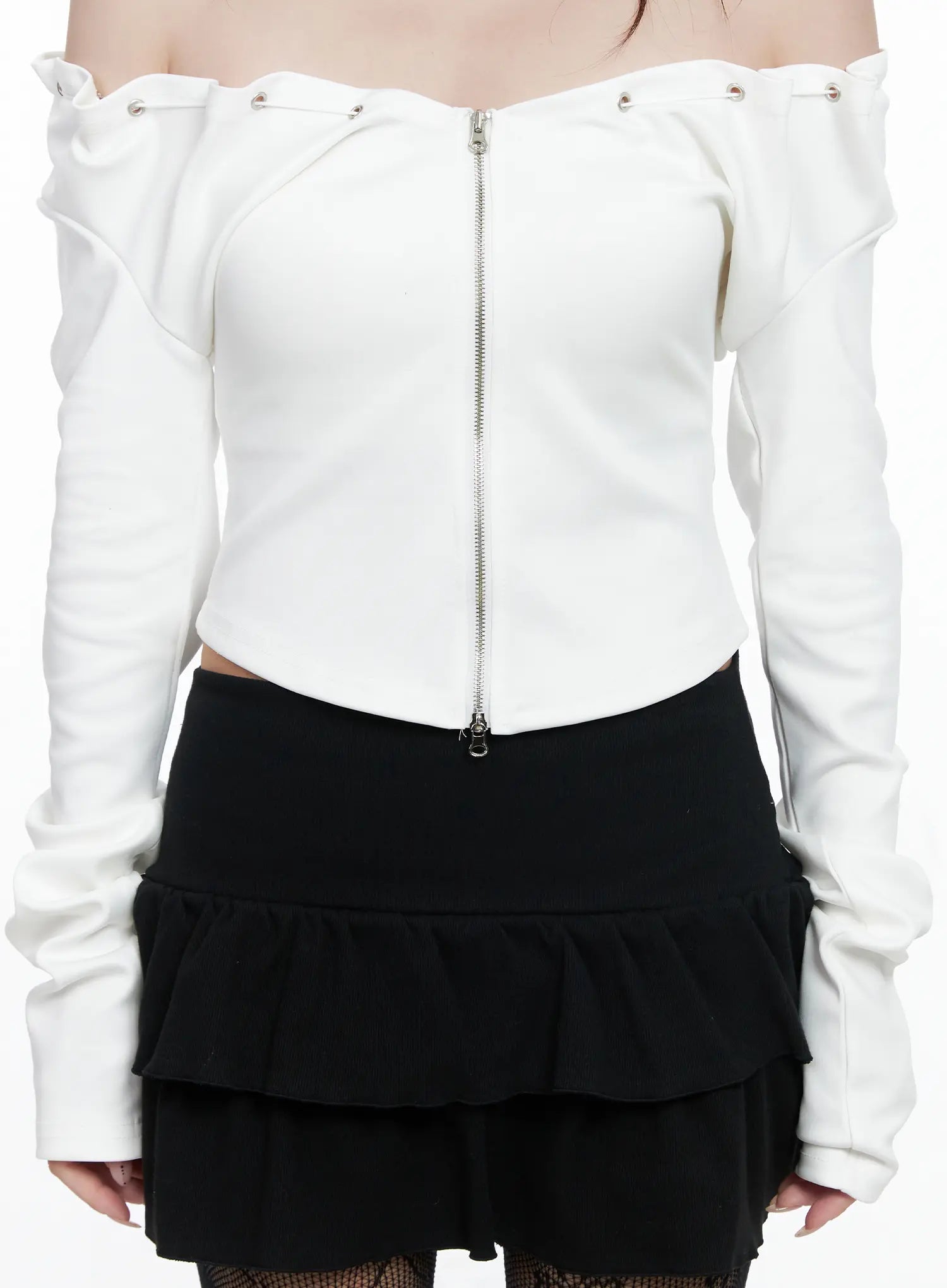 Off-Shoulder Zip-Up Crop Top CO520