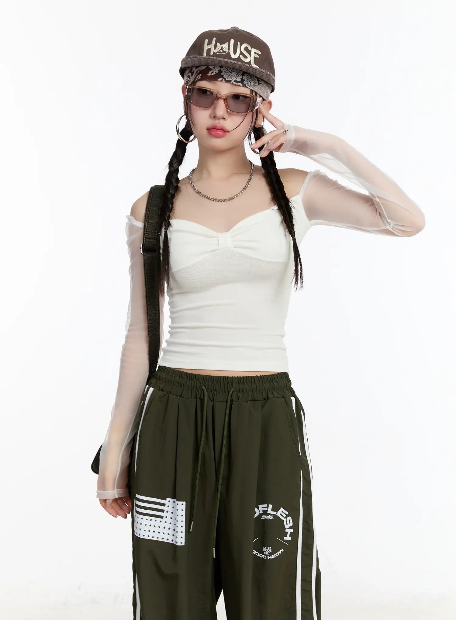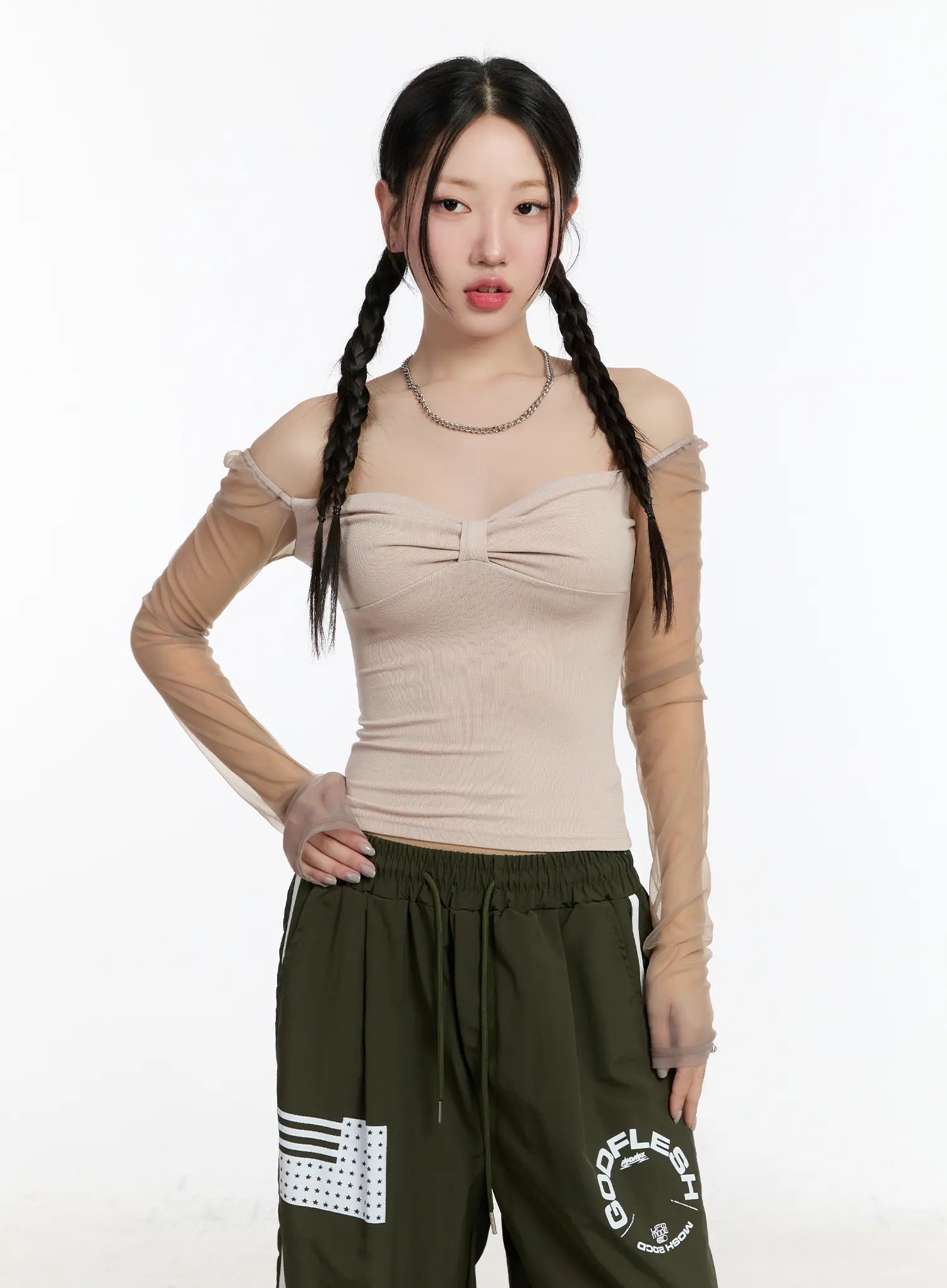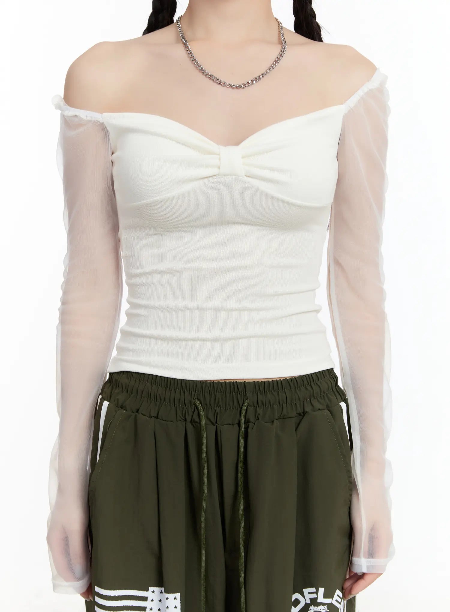 Sheer Frill Off-Shoulder Long Sleeve Top CM511