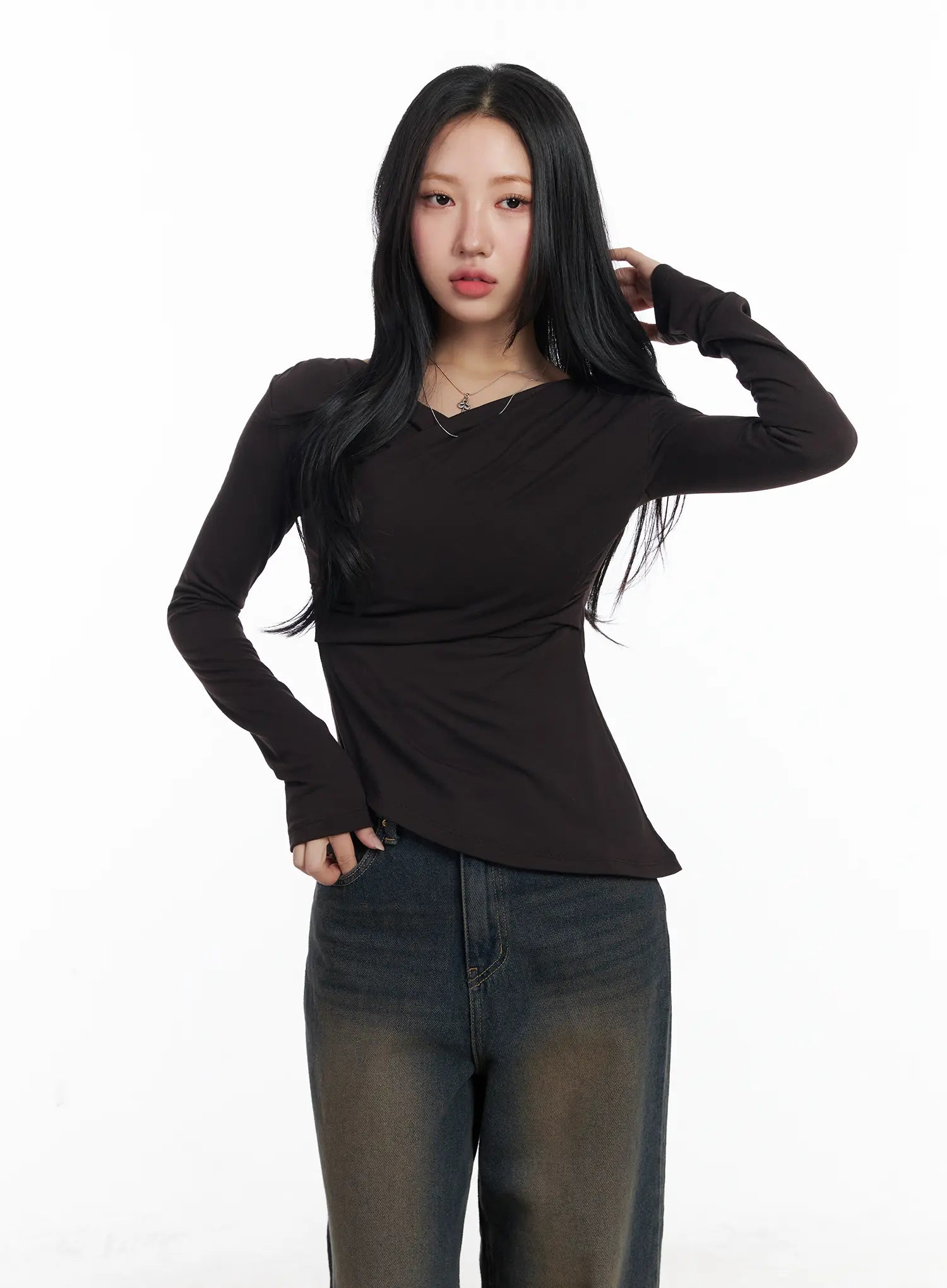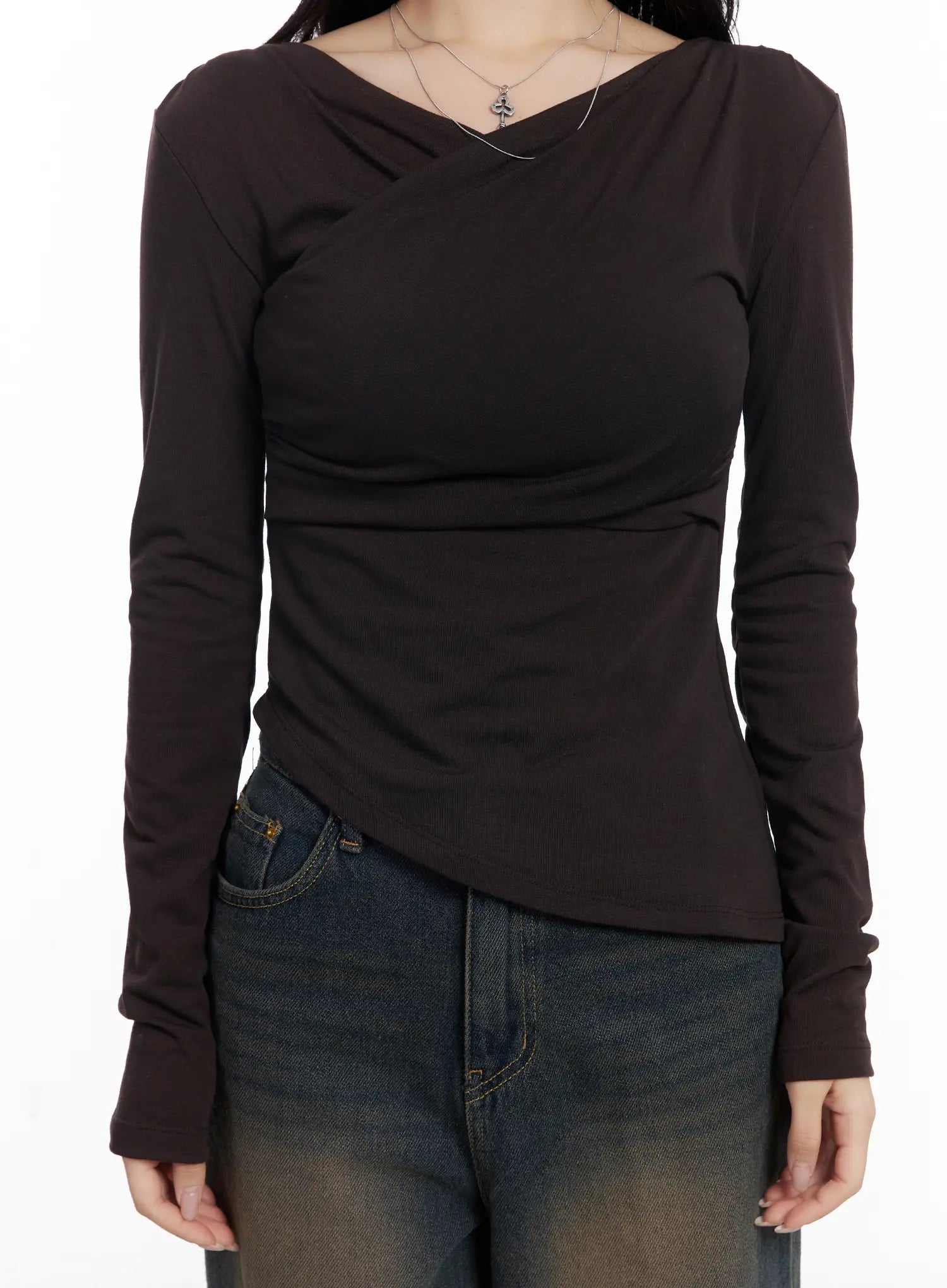 Asymmetric Ruched Long Sleeve Top CJ514