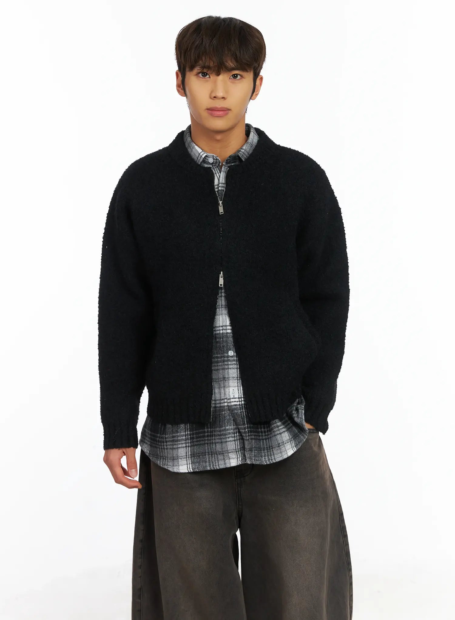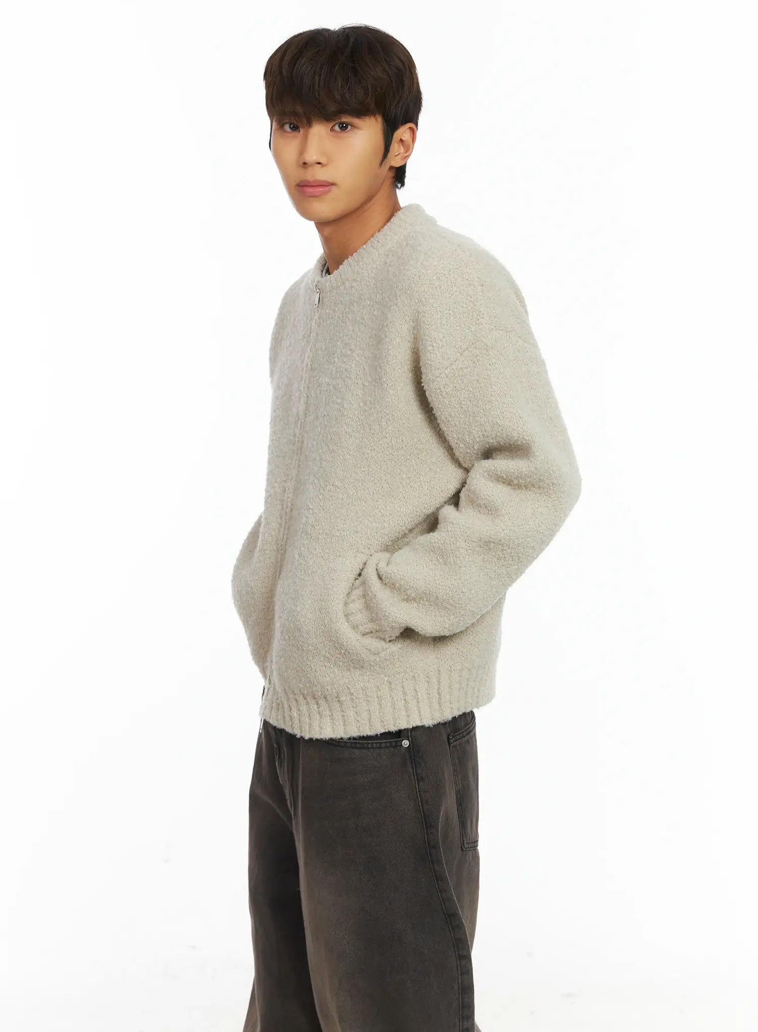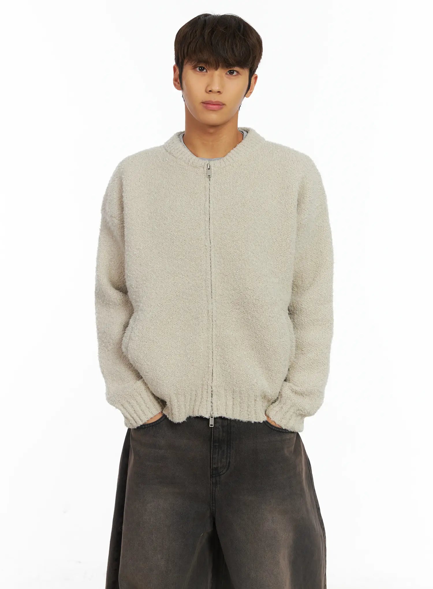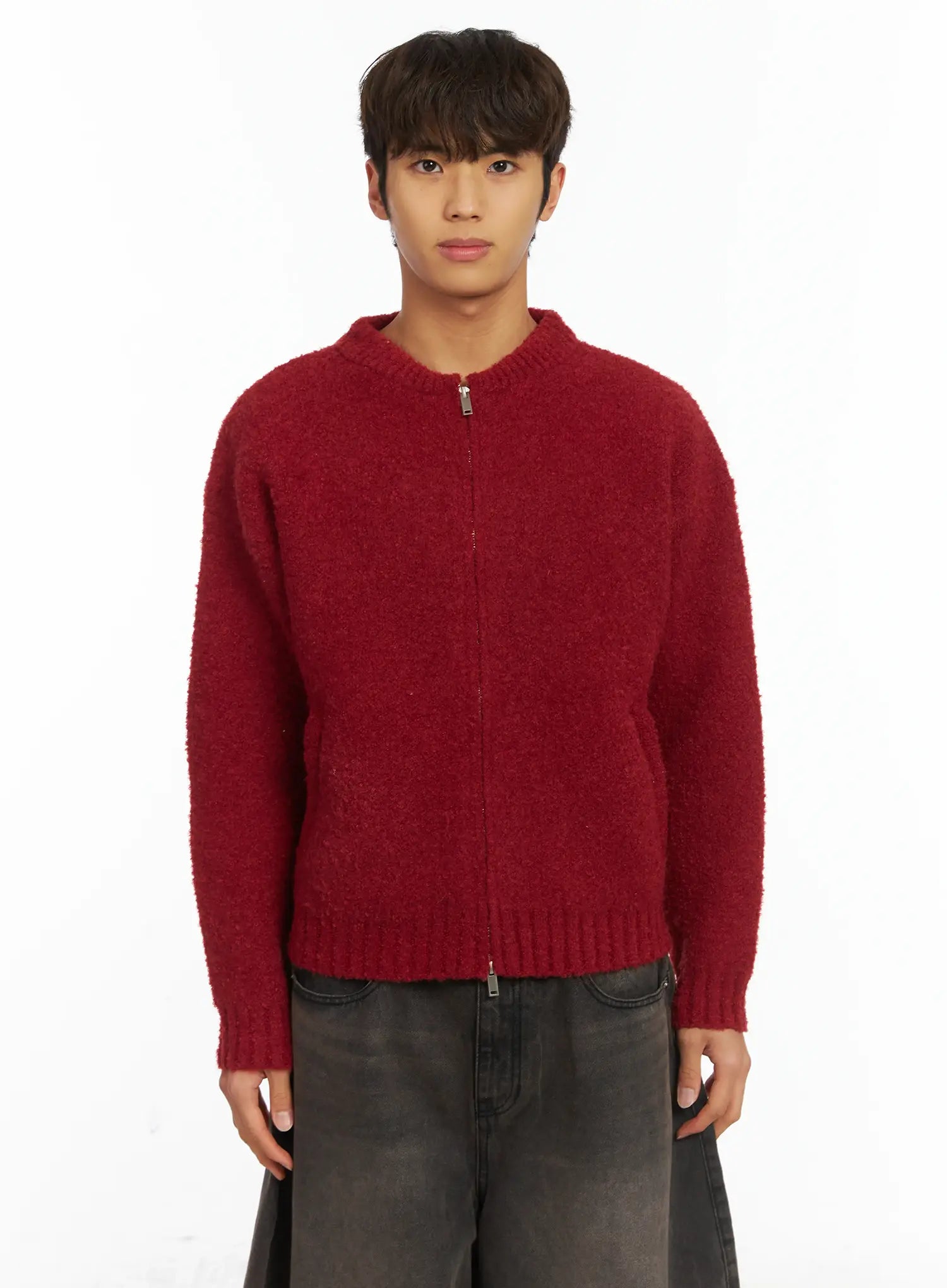 Men's Boucle Zip-Up Cardigan IJ514