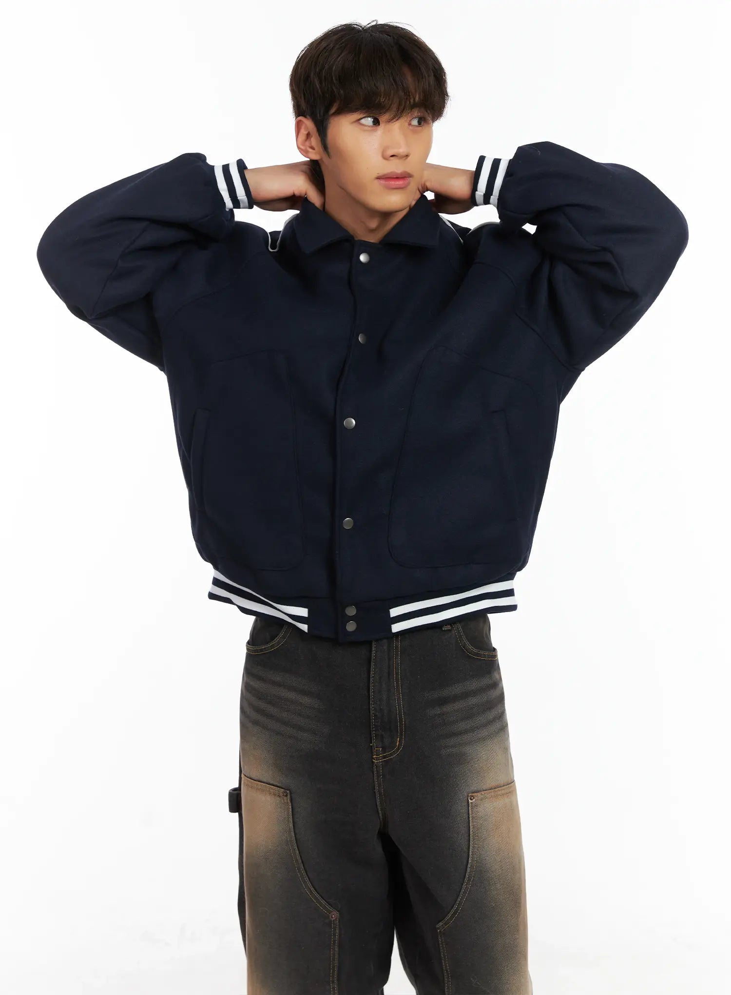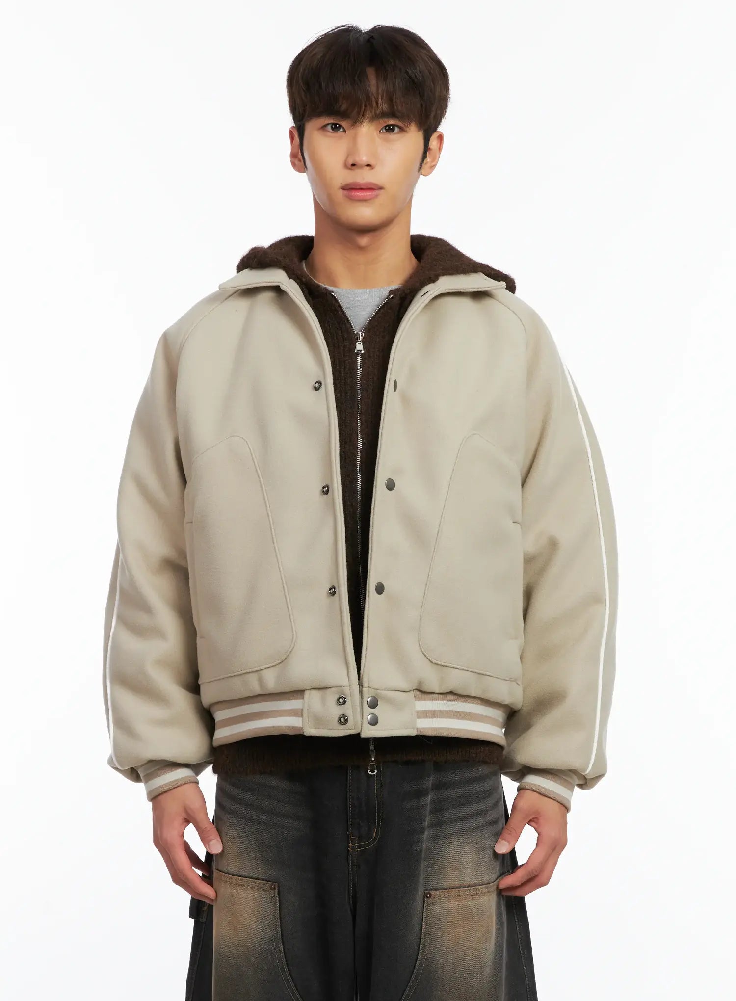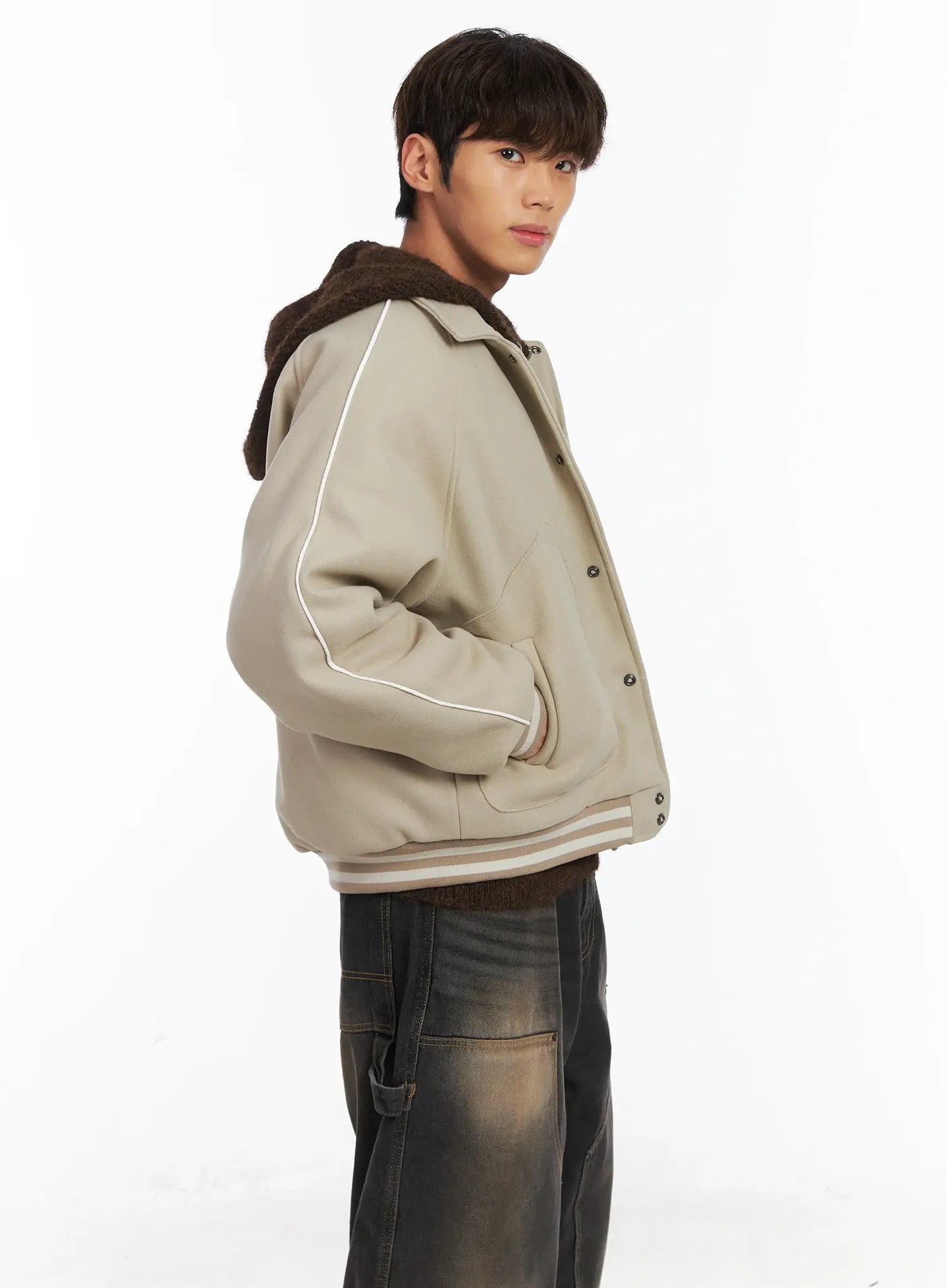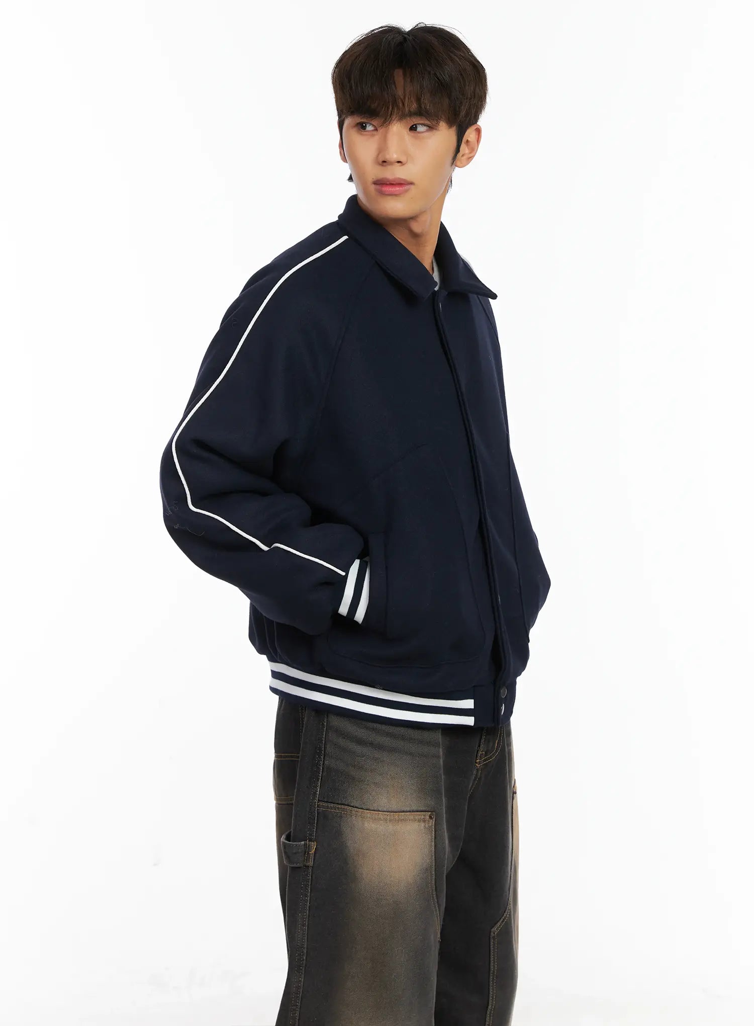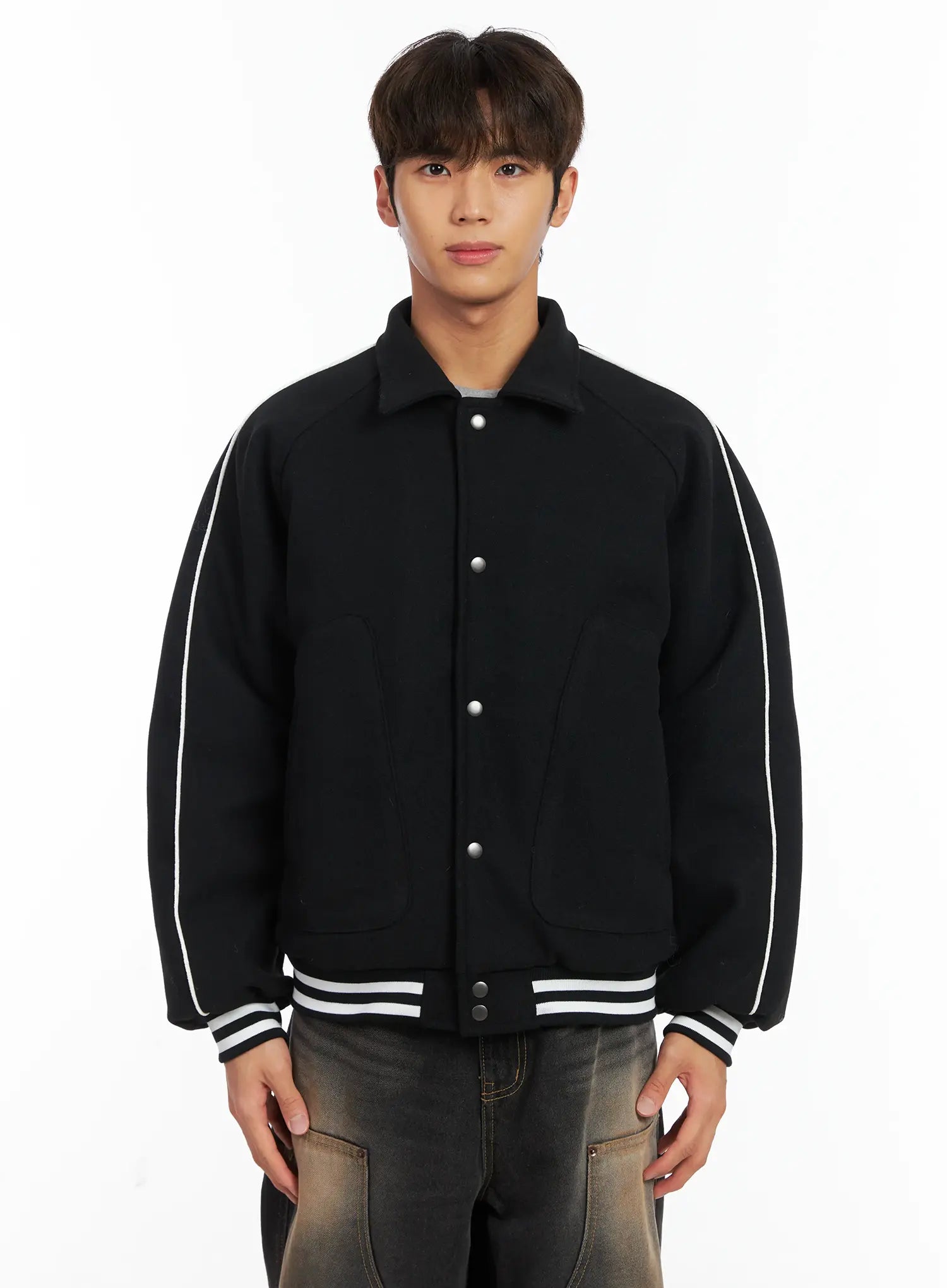 Men's Contrast Piping Varsity Jacket ID511
