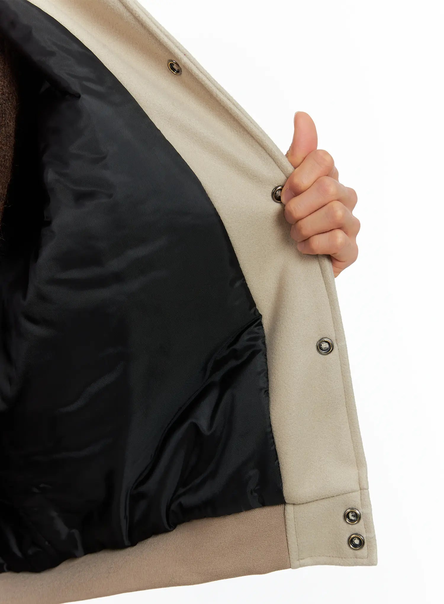 Model is wearing size M/L and the color Beige.
