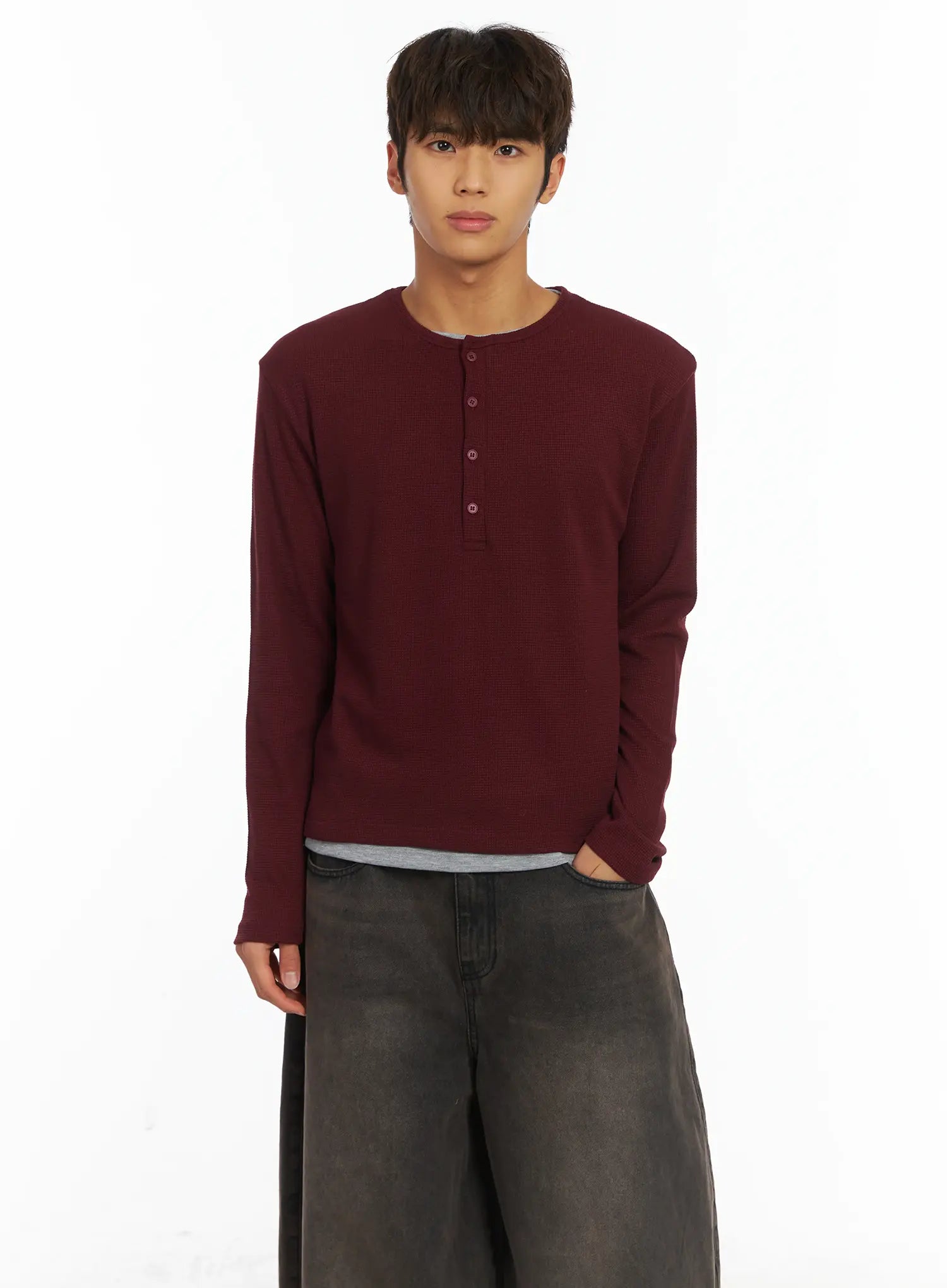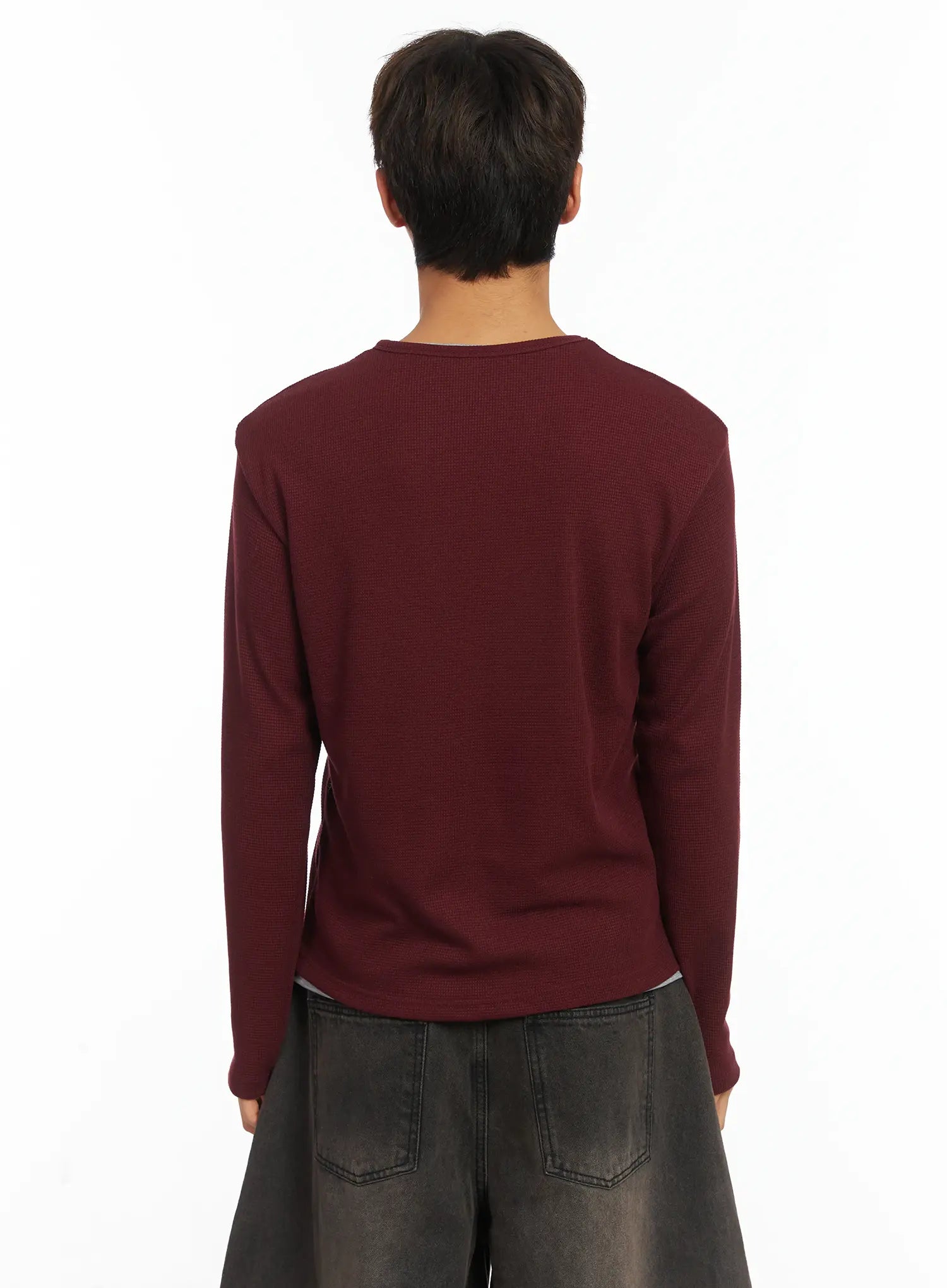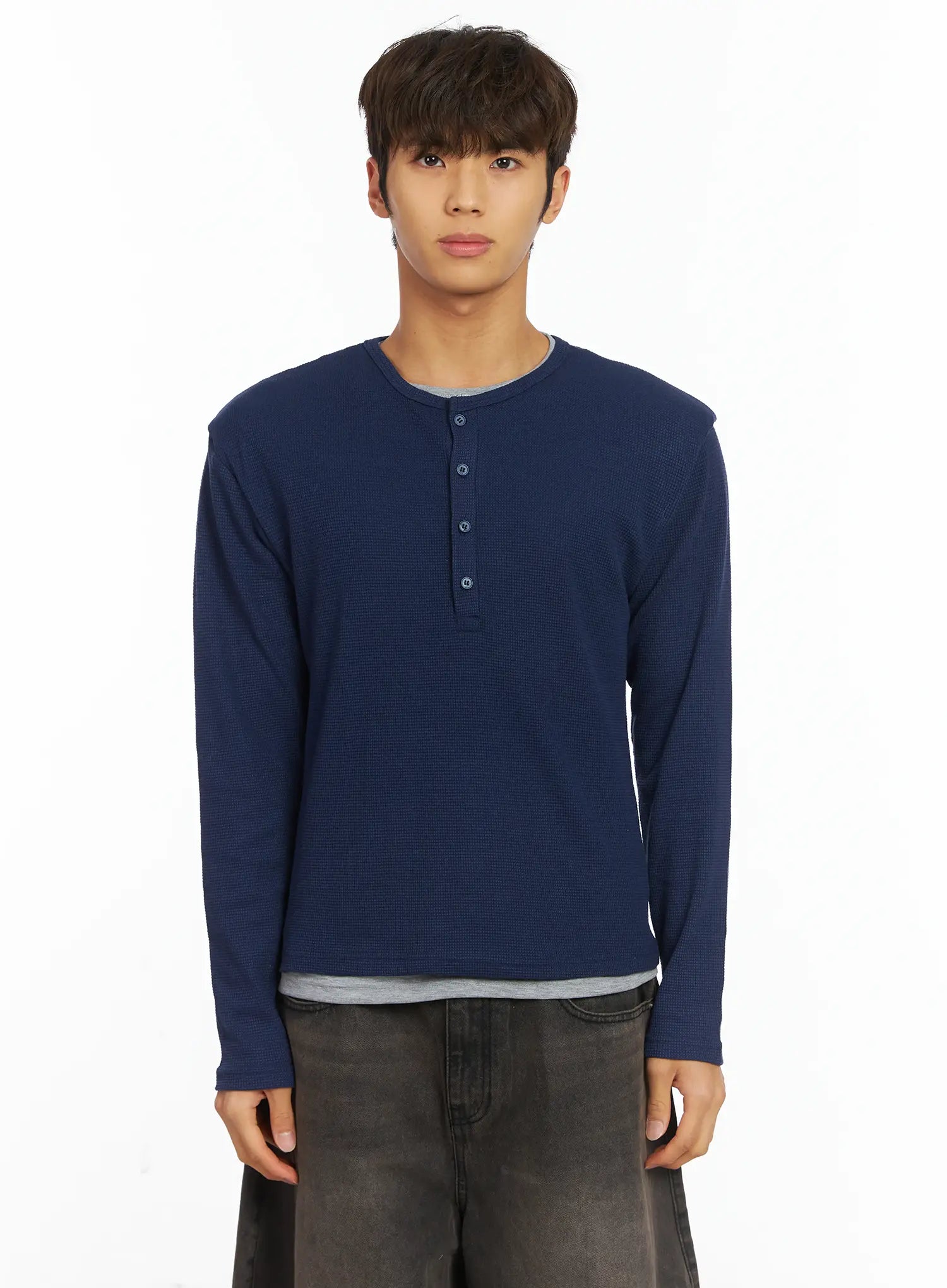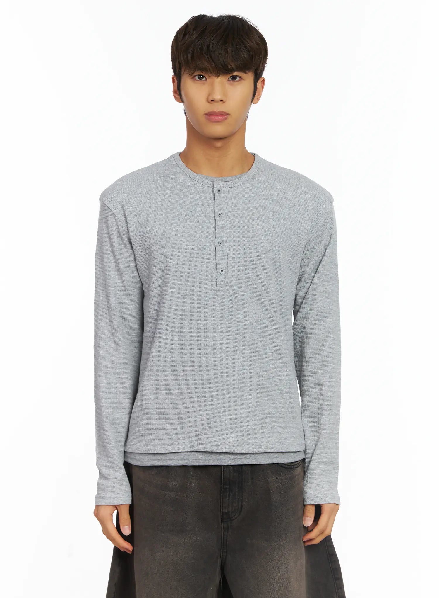 Men's Layered Waffle Henley Long Sleeve Shirt IJ514