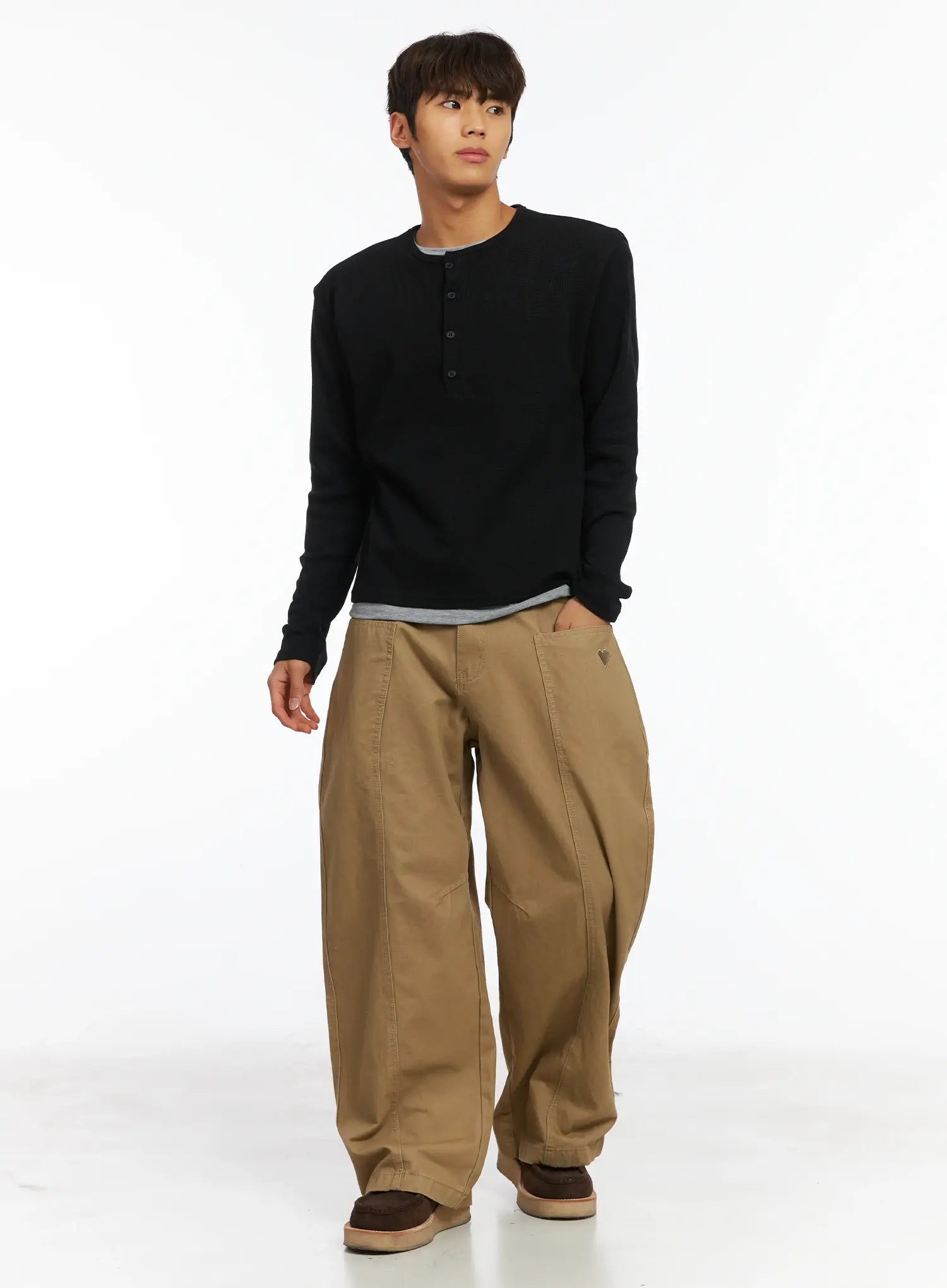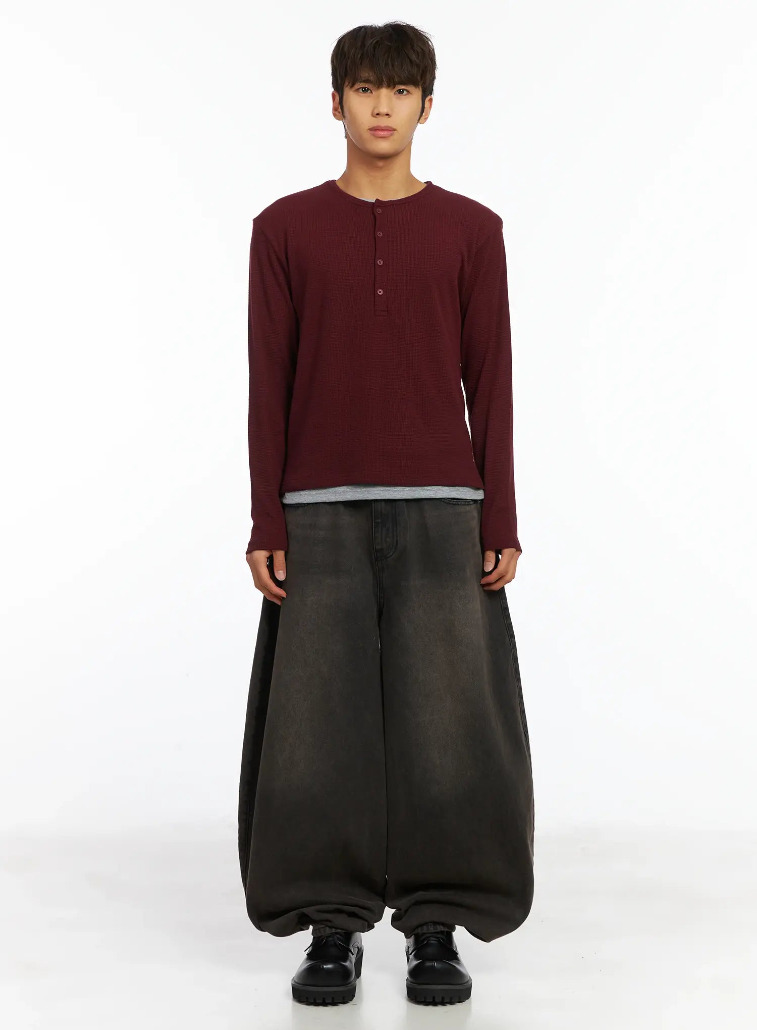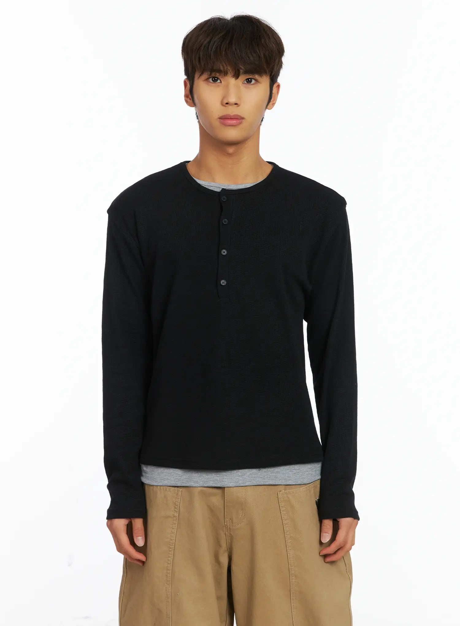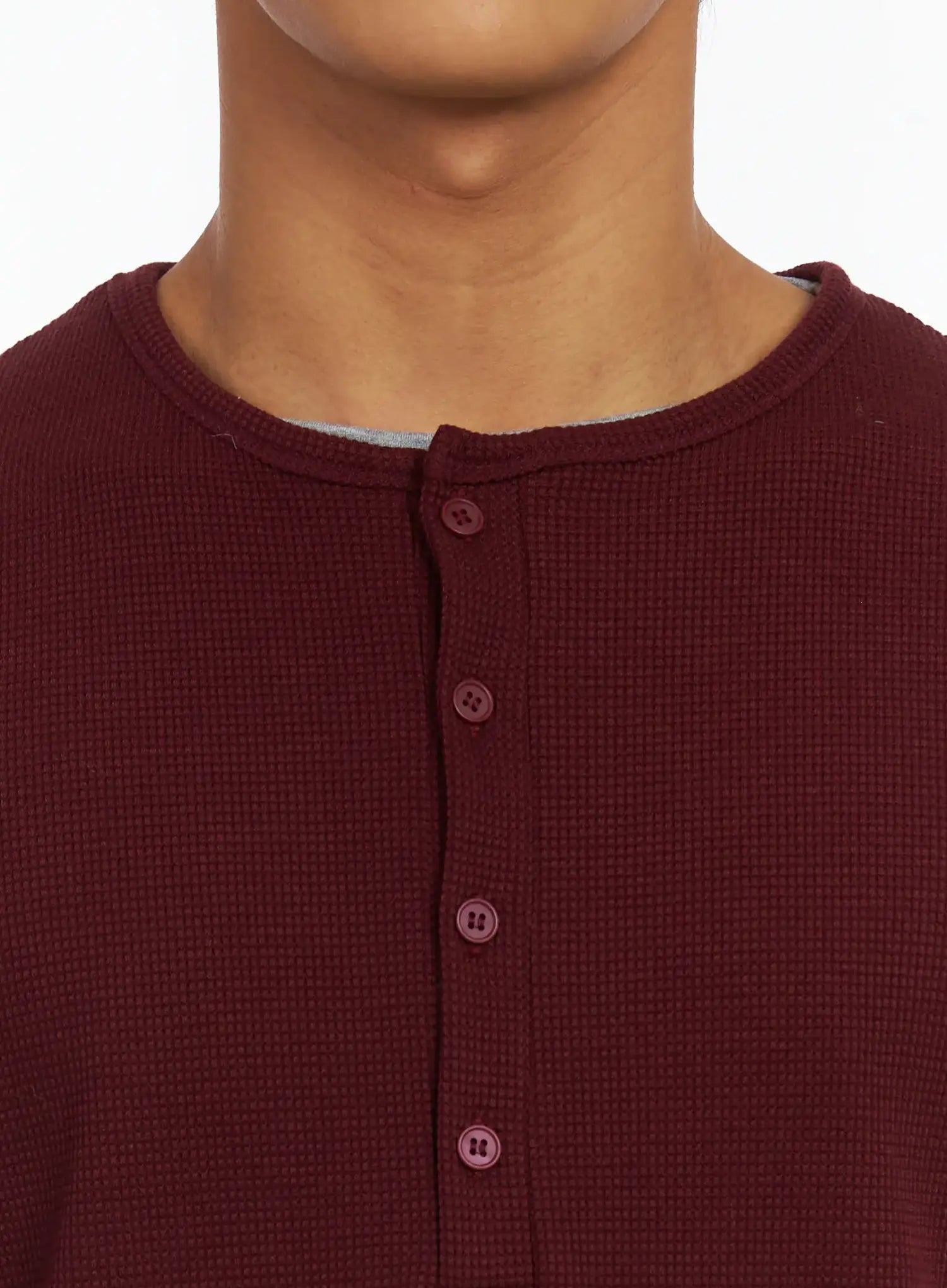 Men's Layered Waffle Henley Long Sleeve Shirt IJ514