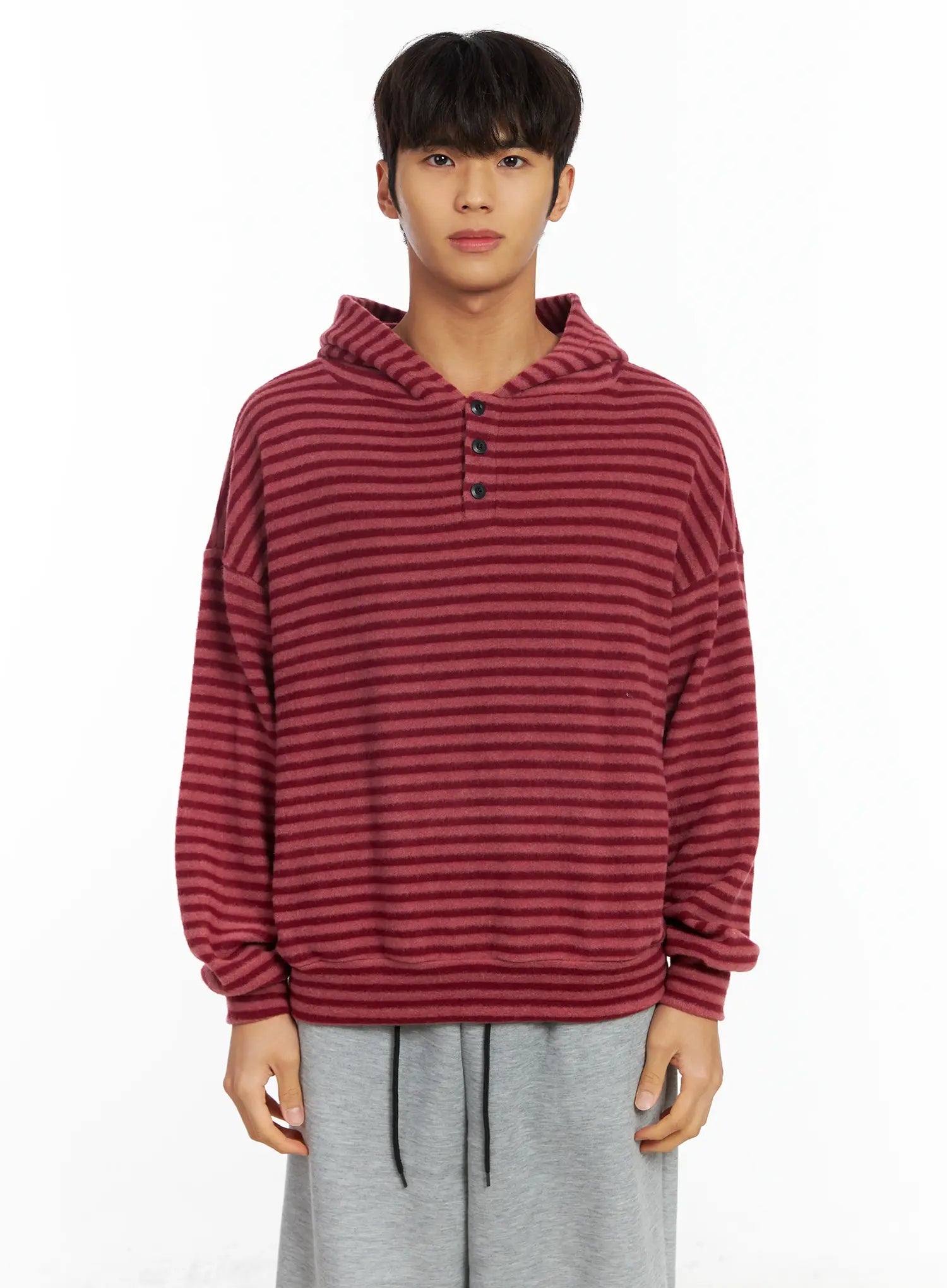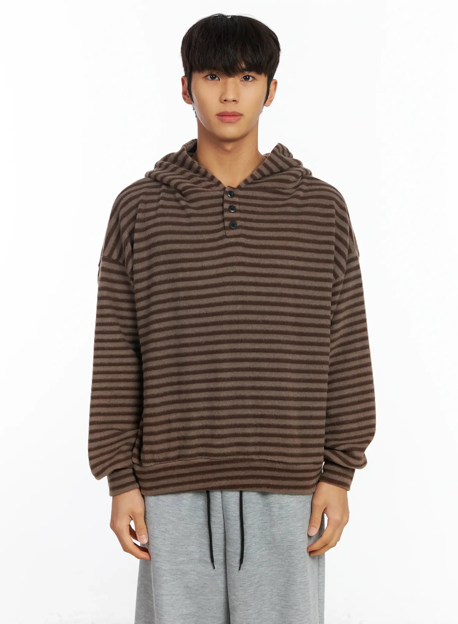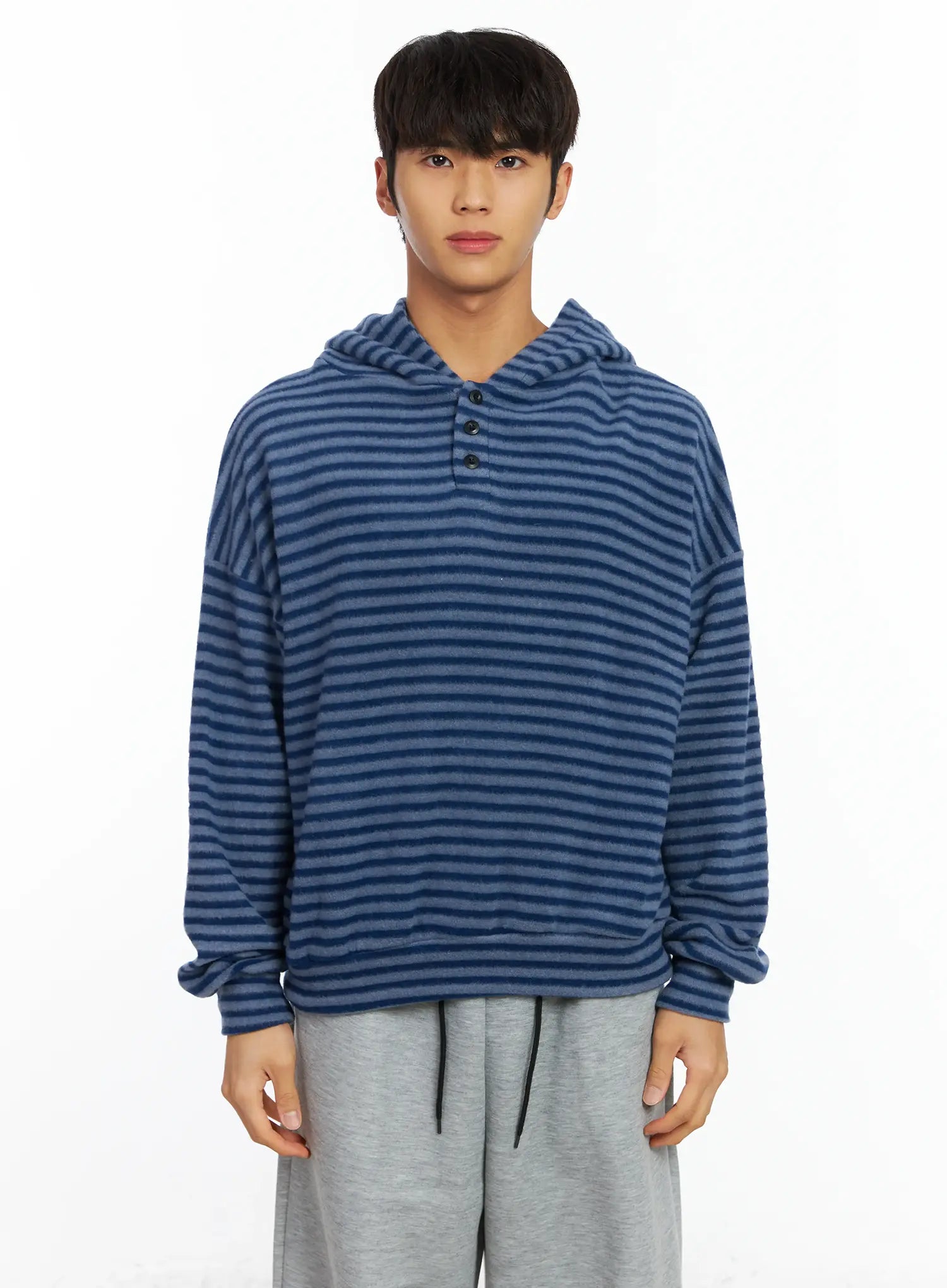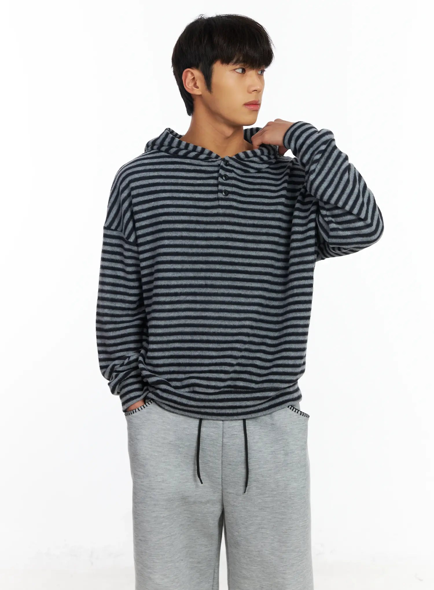 Men's Striped Fleece Henley Hoodie IF506