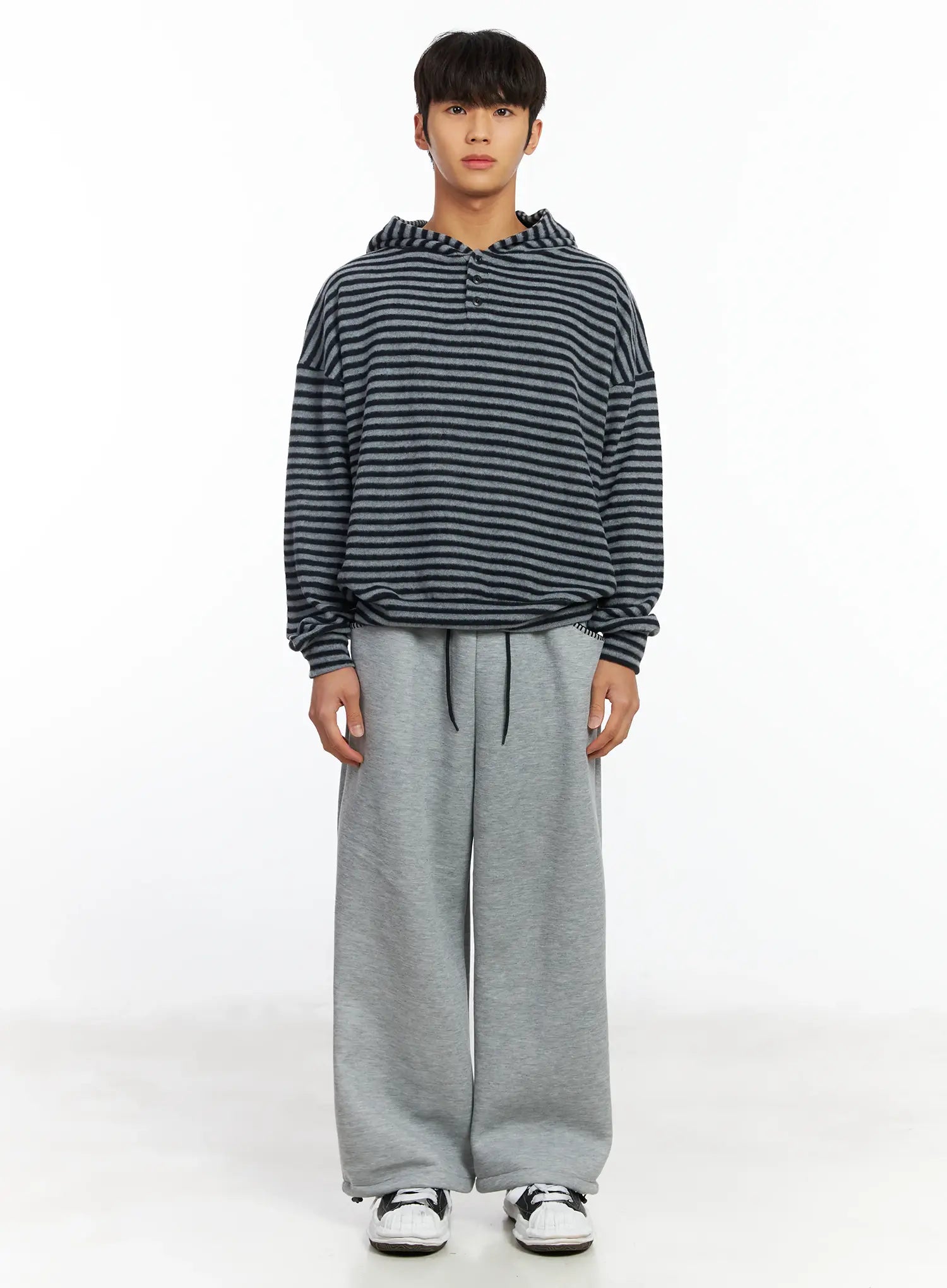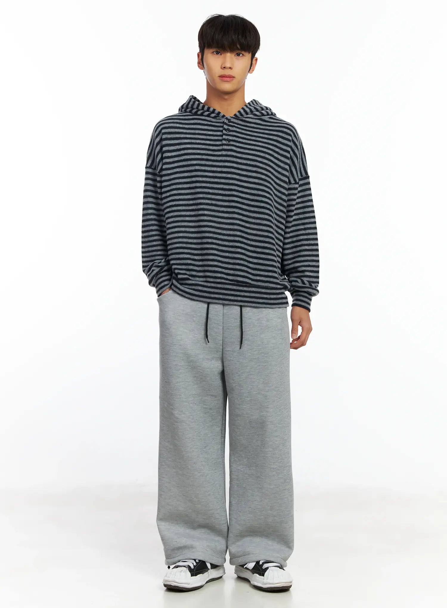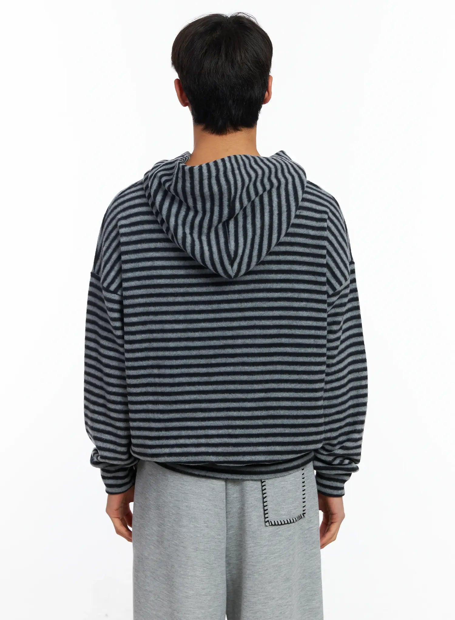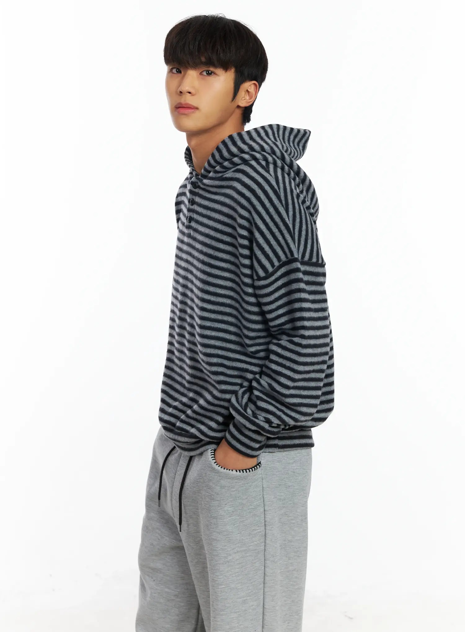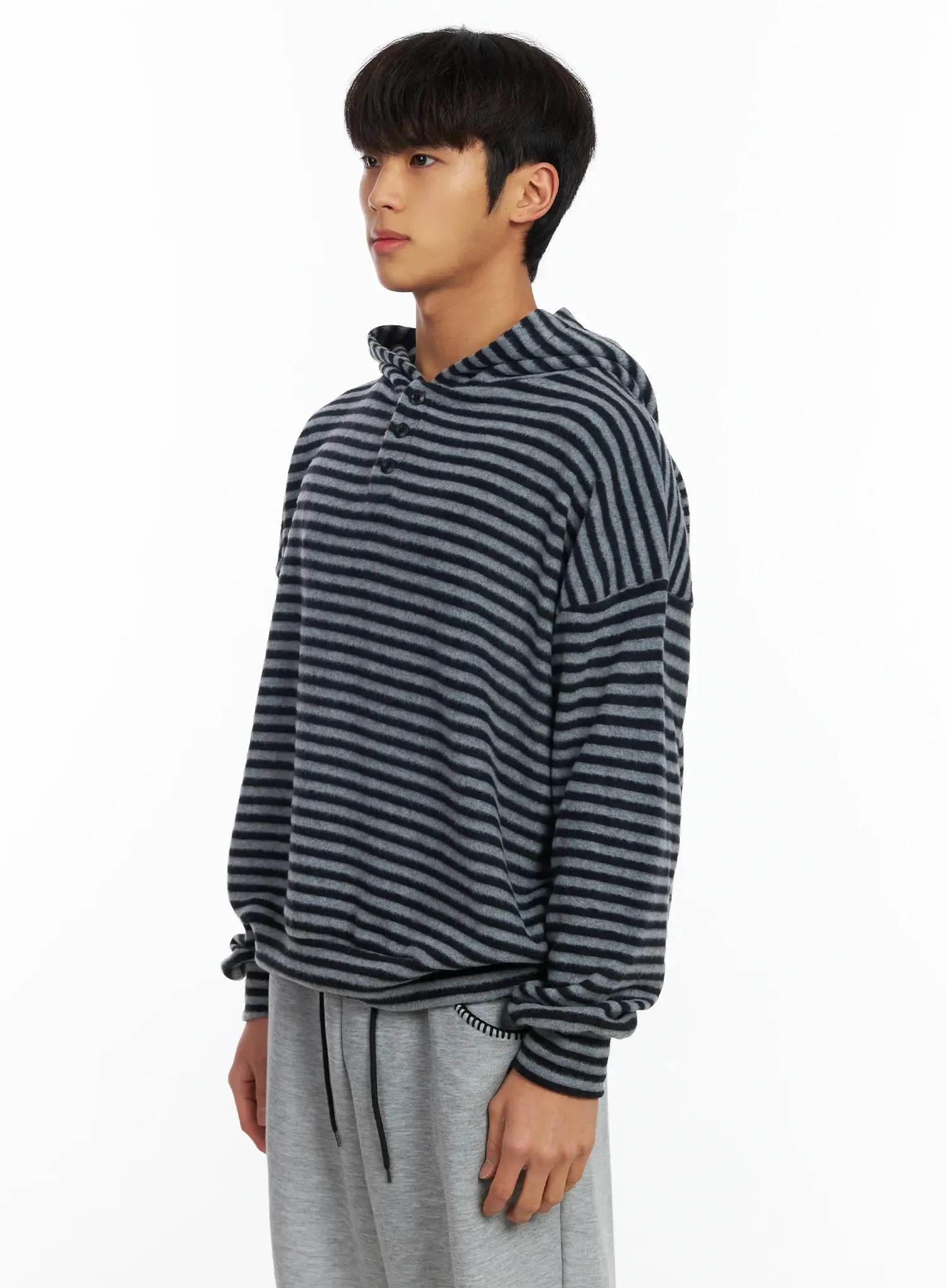Men's Striped Fleece Henley Hoodie IF506