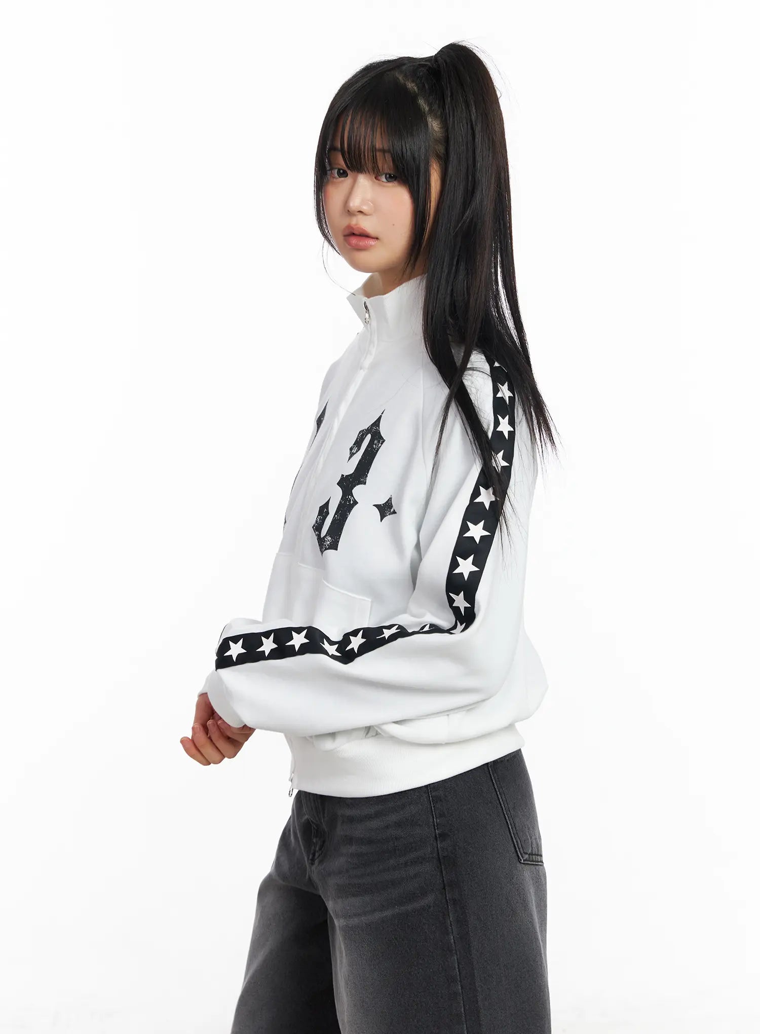 Star Graphic Lined Sporty Zip-Up Jacket CF504