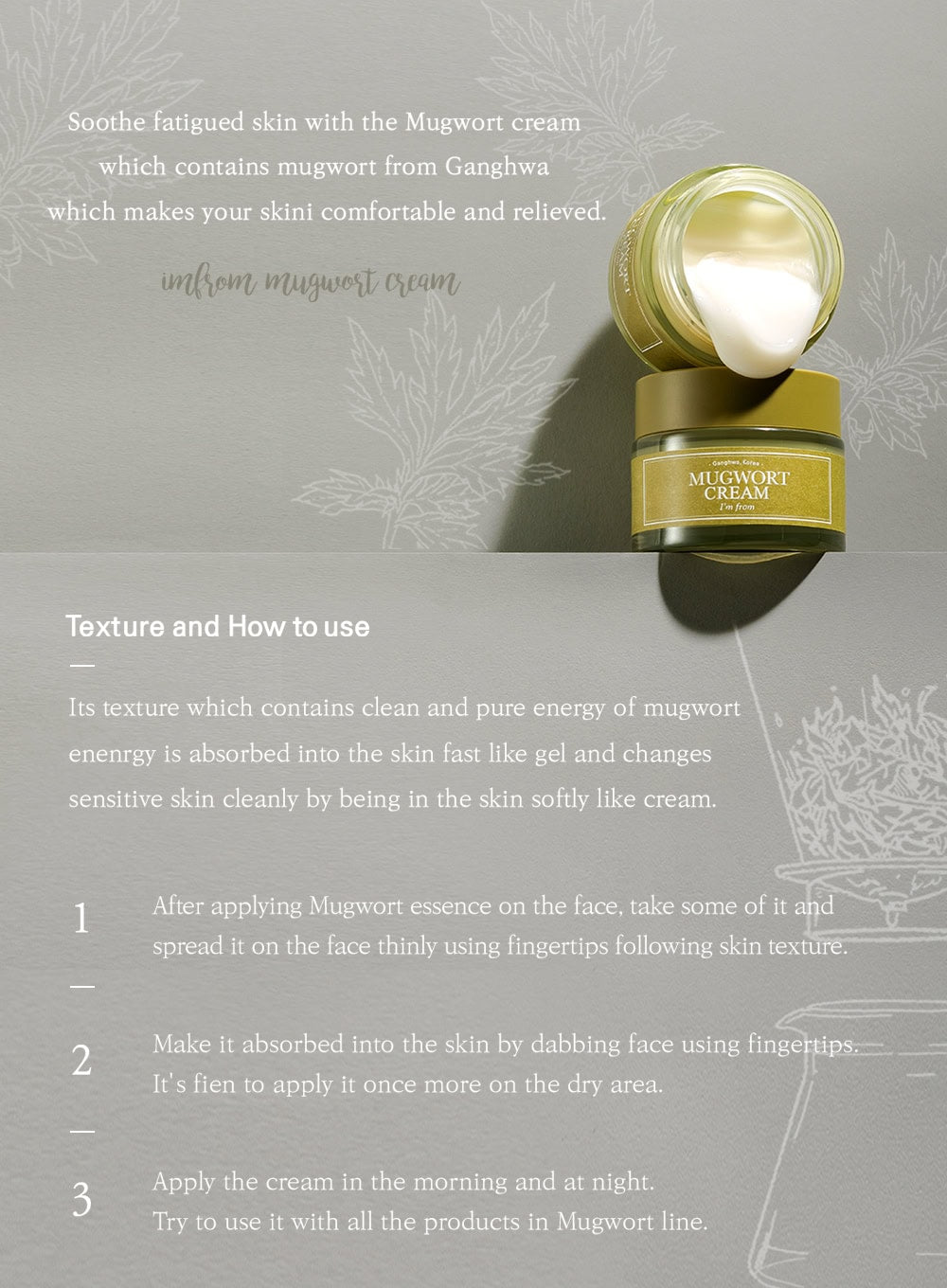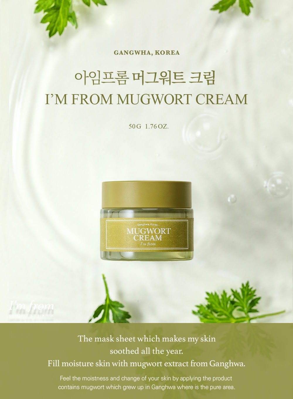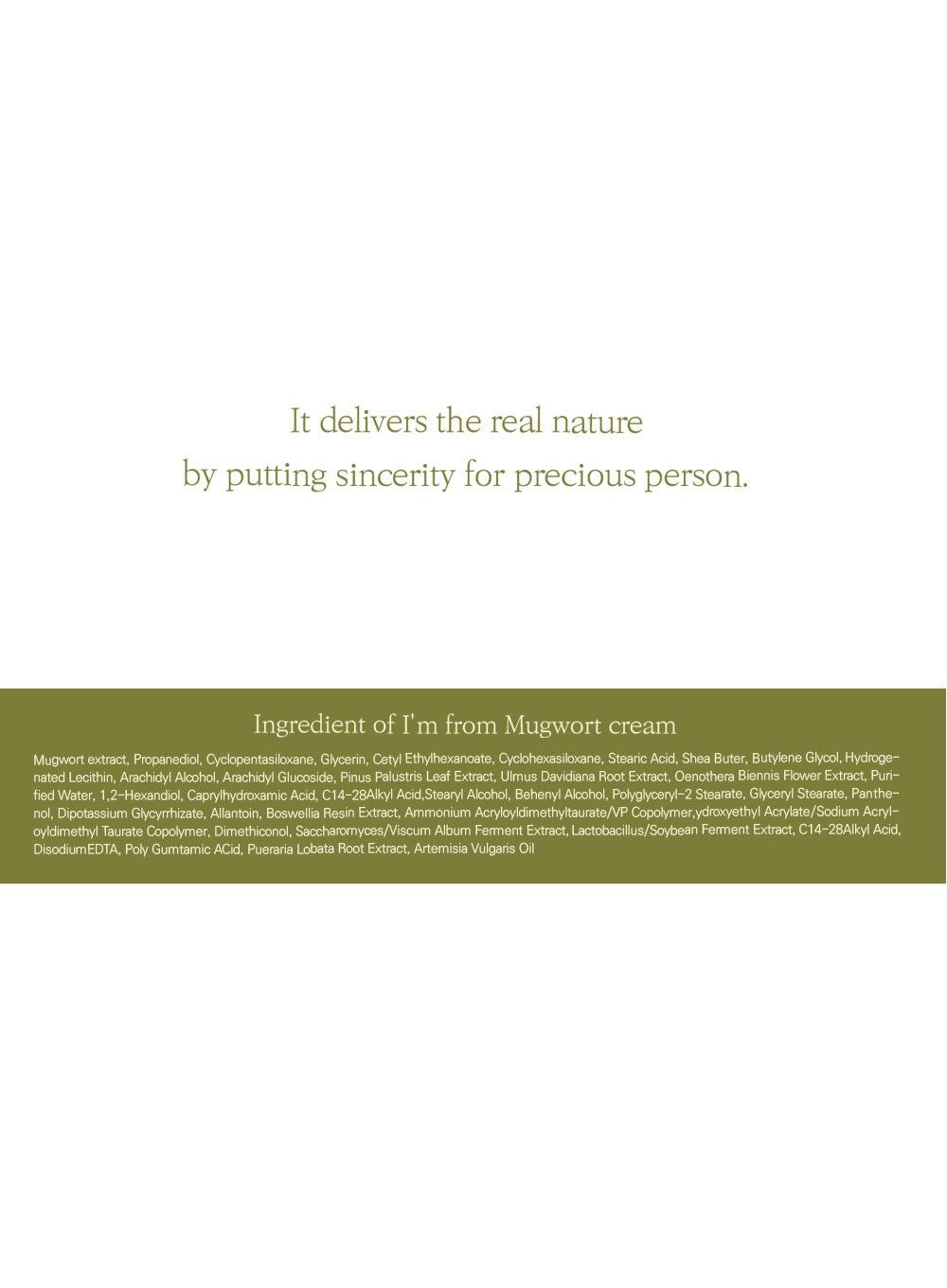 A cream containing 73.55% mugwort extract for soothing hydration and a healthy glow.