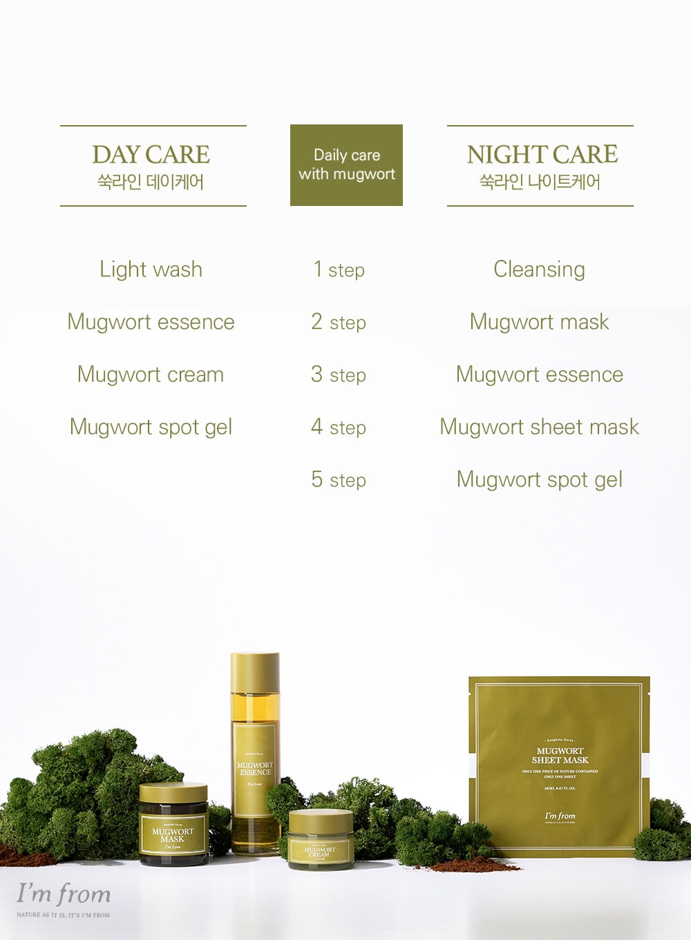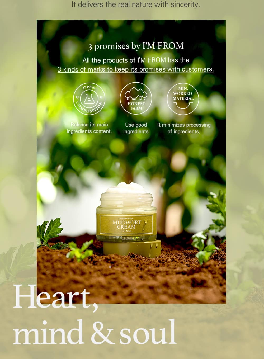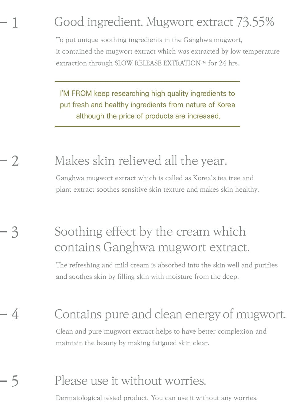 A cream containing 73.55% mugwort extract for soothing hydration and a healthy glow.