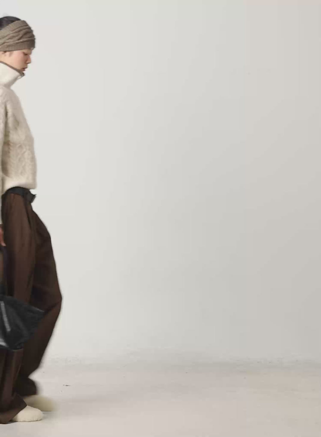 The puffer jacket, styled with ski goggles and chunky sneakers, effortlessly balances functionality and edge. Its clean lines and monochromatic palette create a Y3K look that’s perfect for winter activities or insta-worthy photos. This ensemble encapsulates the collection’s focus on merging comfort with cutting-edge picks.