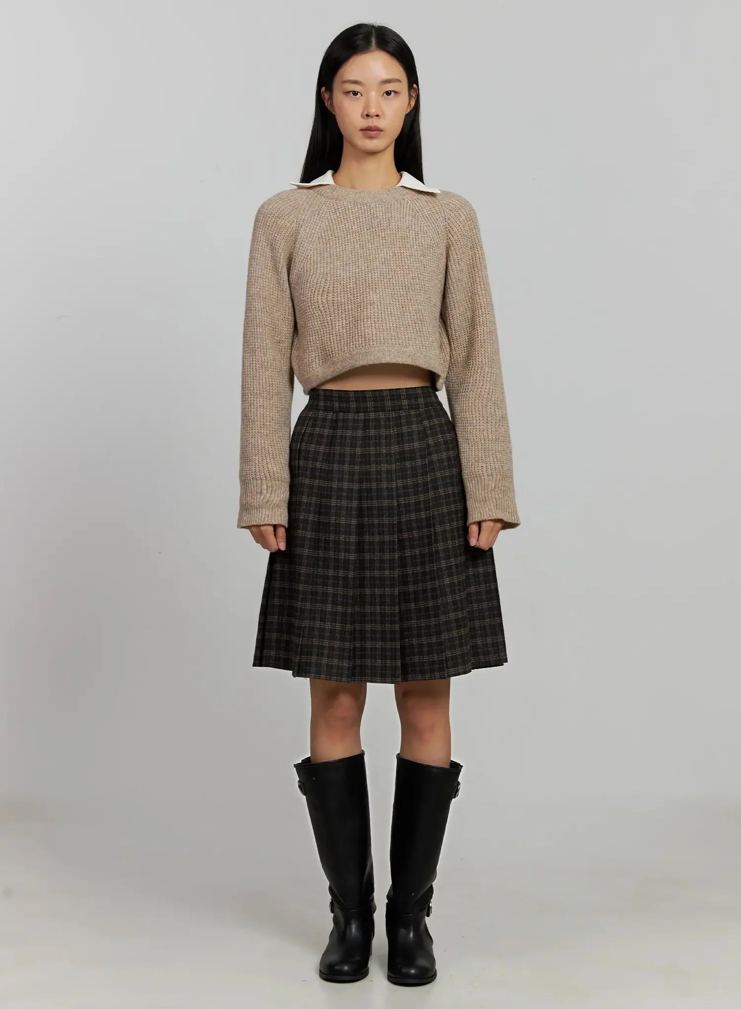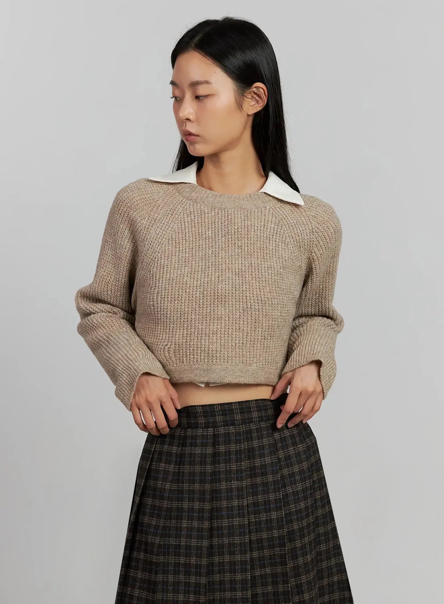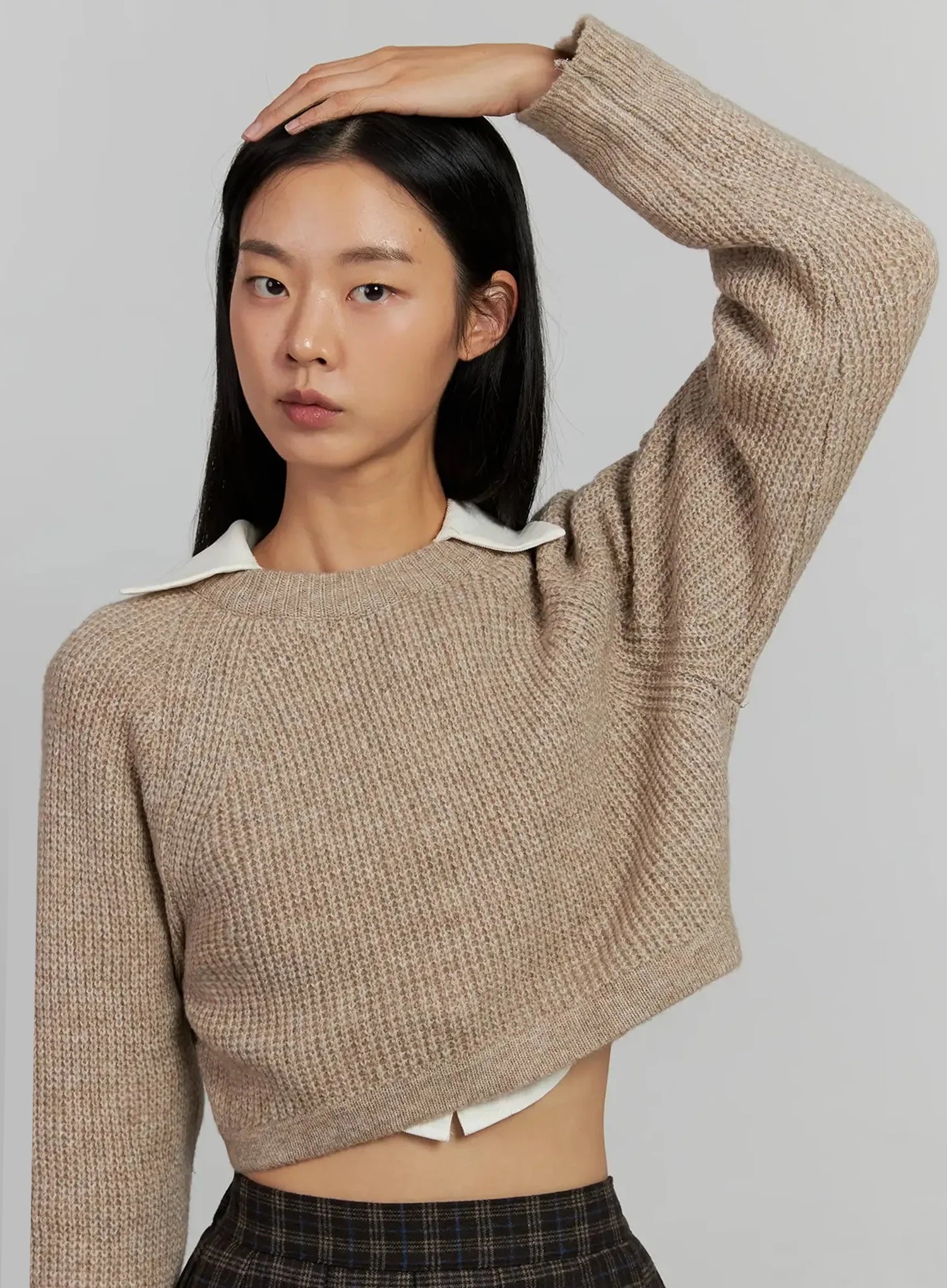 Cropped Crewneck Knit Top IJ502