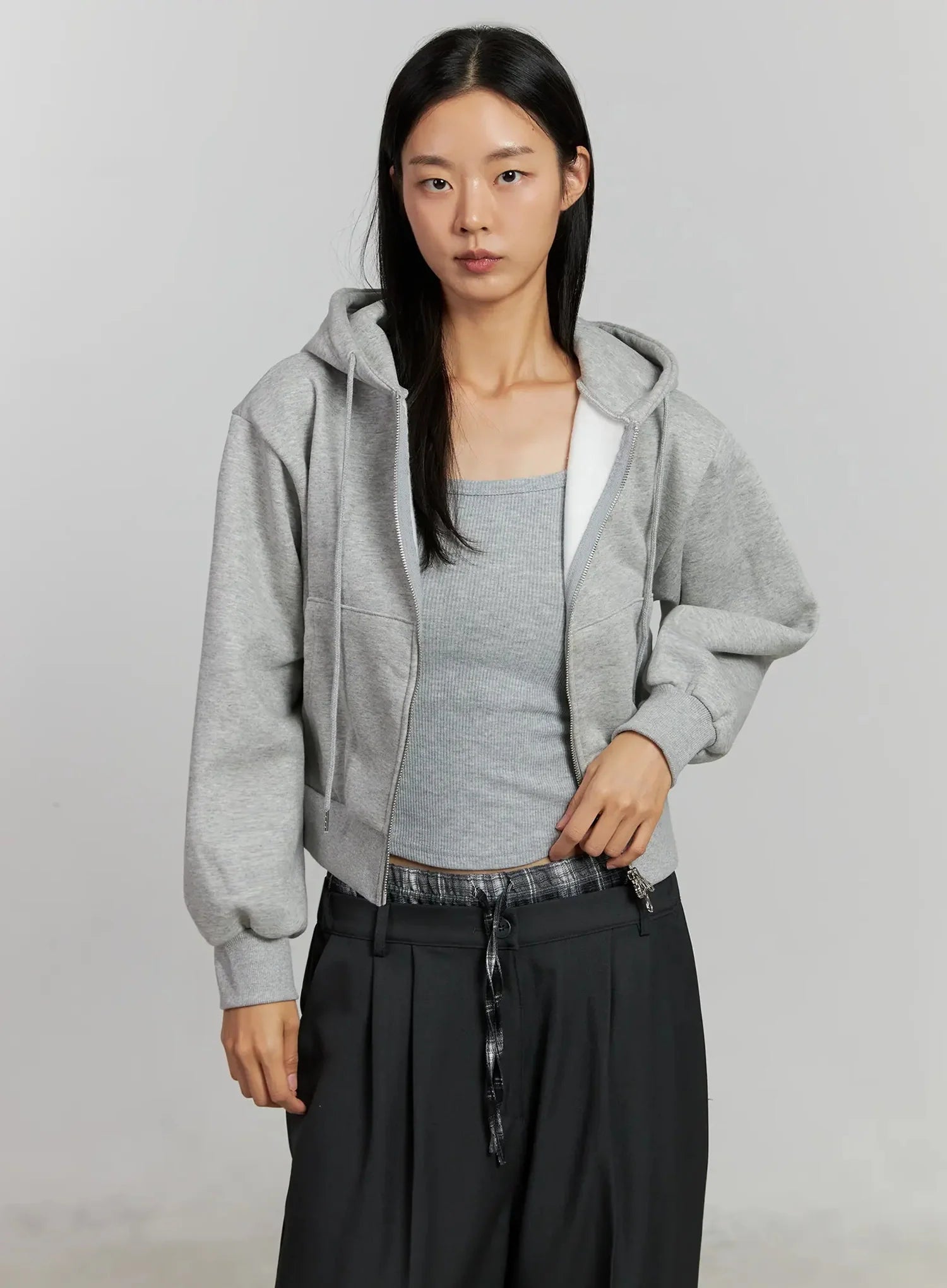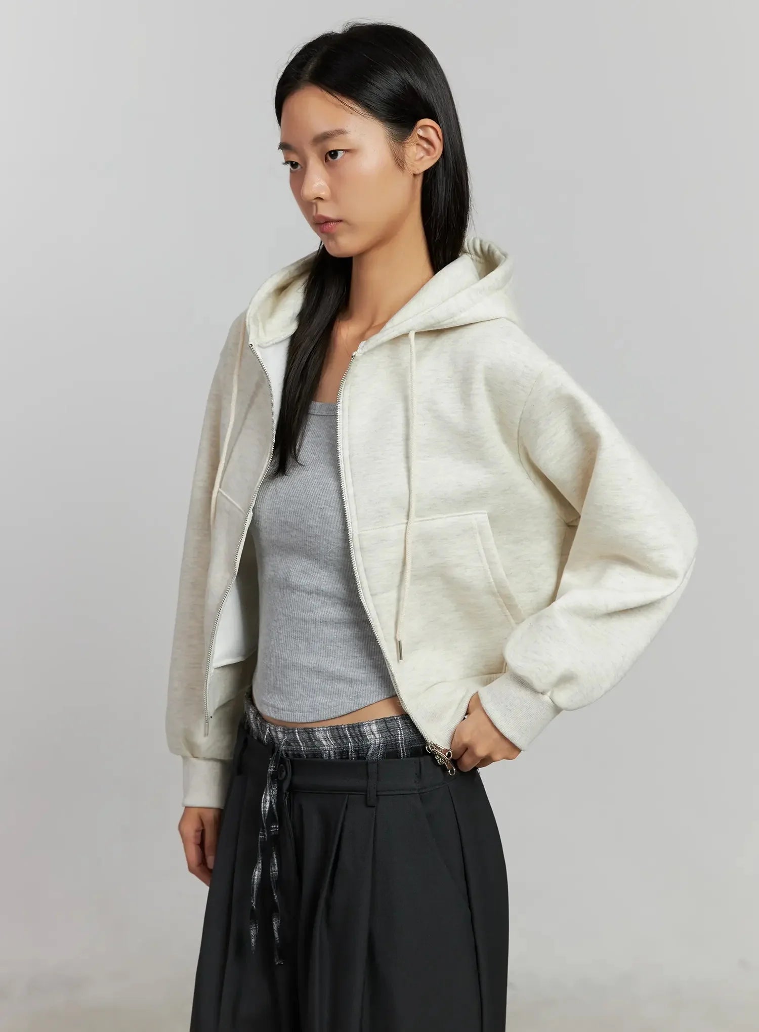 Cropped Fleece Zip-Up Hoodie IJ502