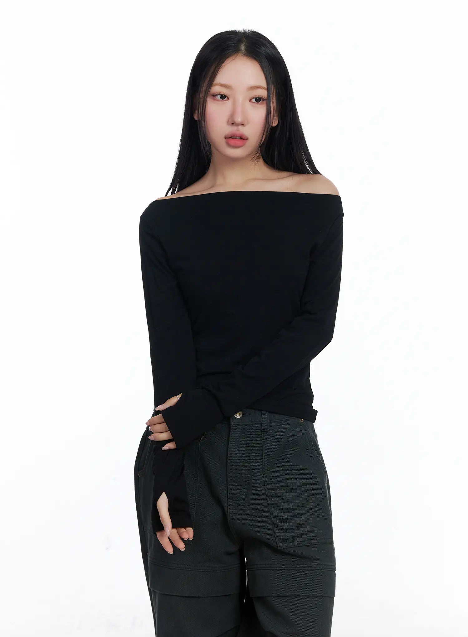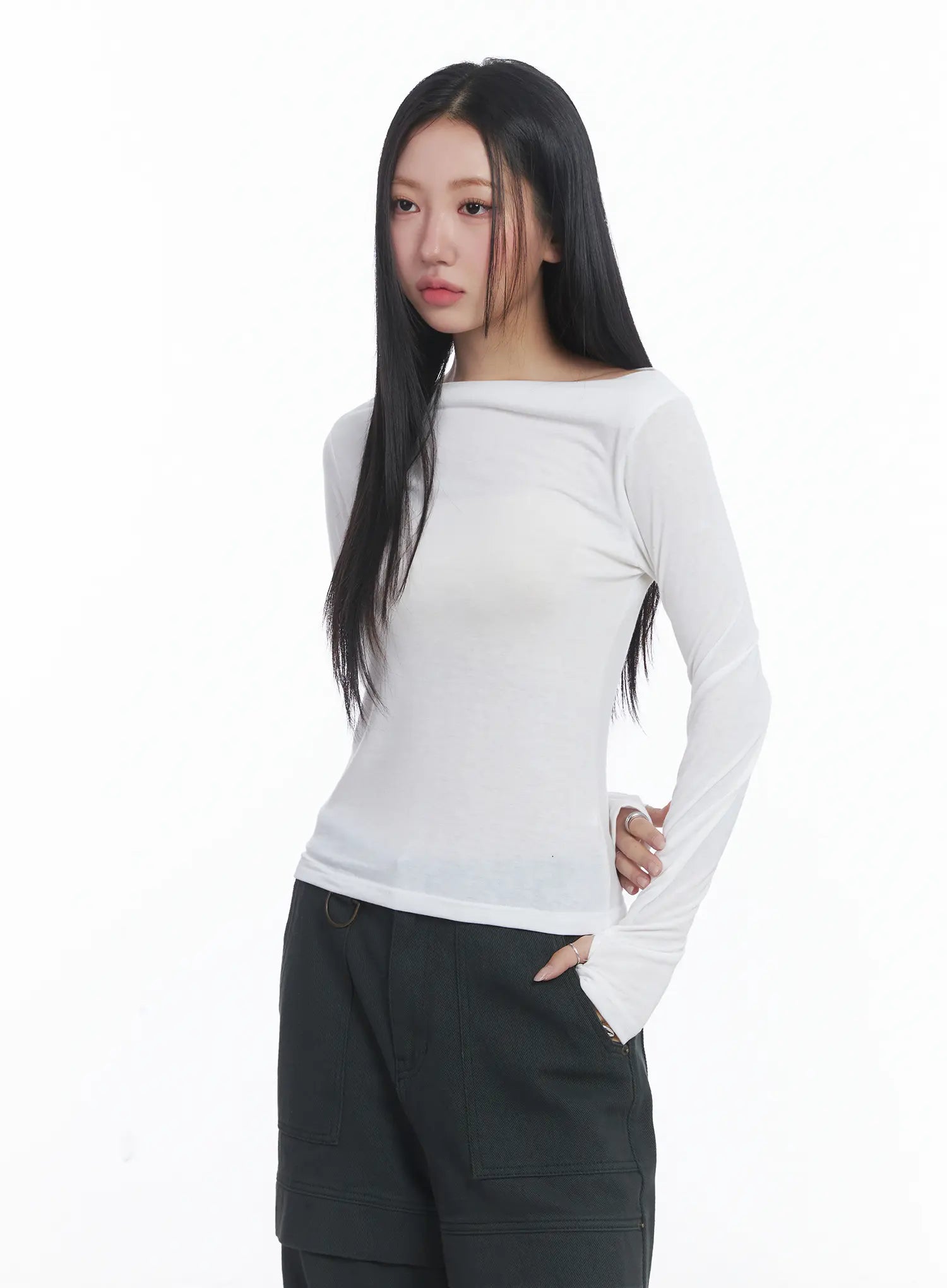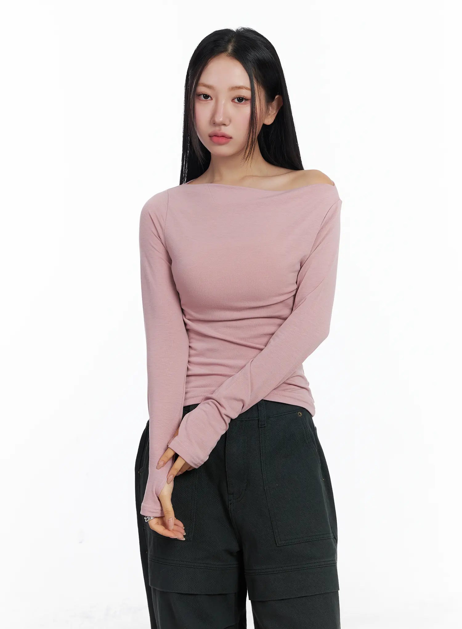 Fleeced Boatneck Long Sleeve Top CJ514