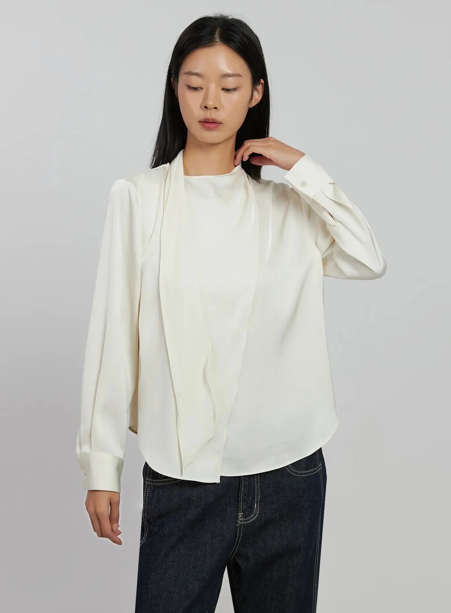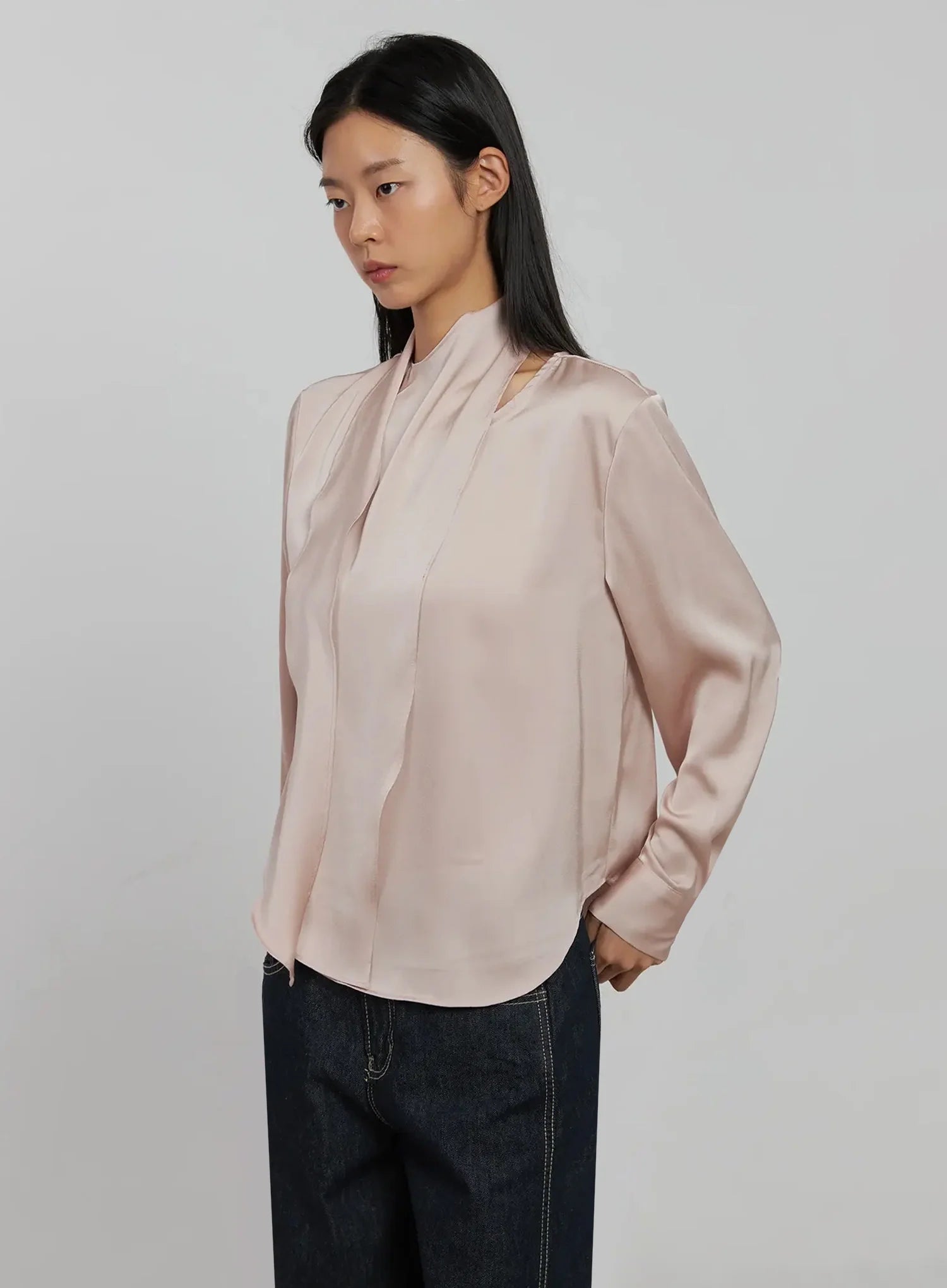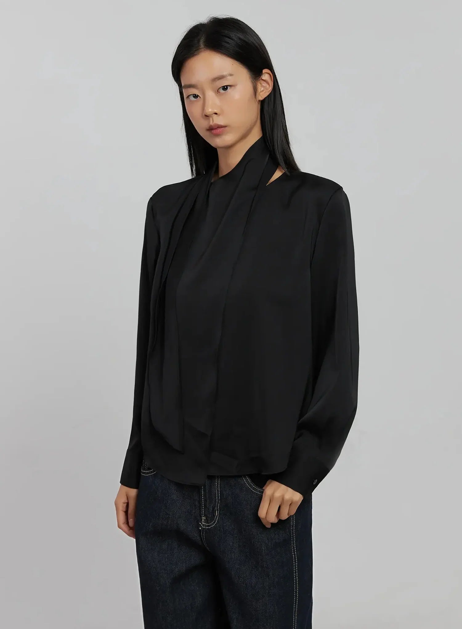 Flowy Neck Tie Blouse IJ509