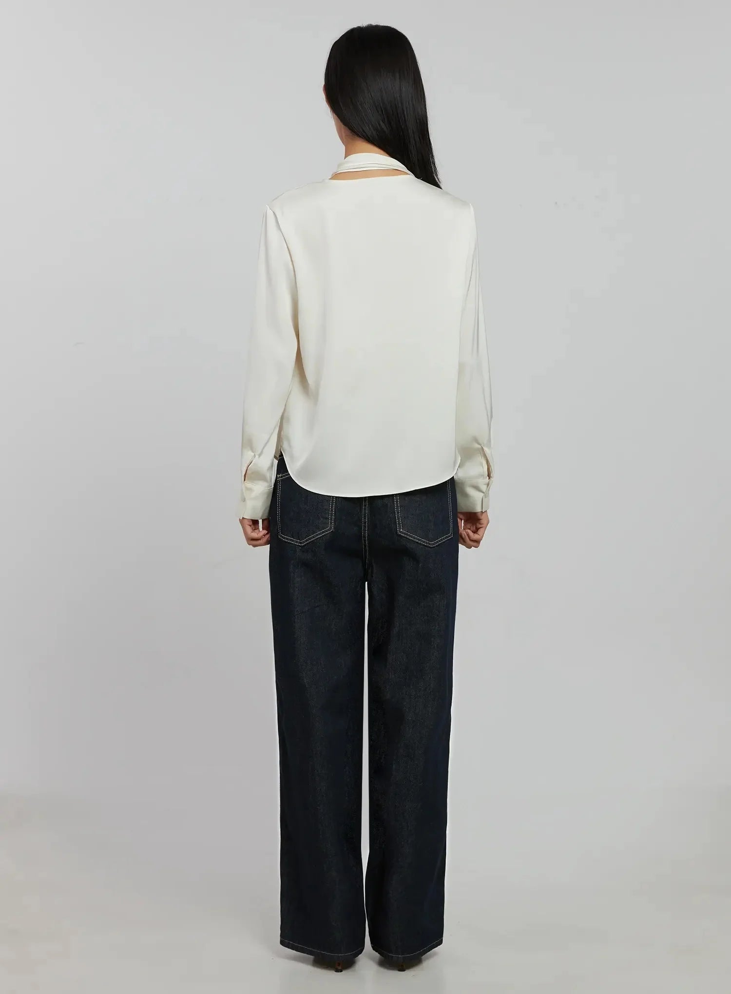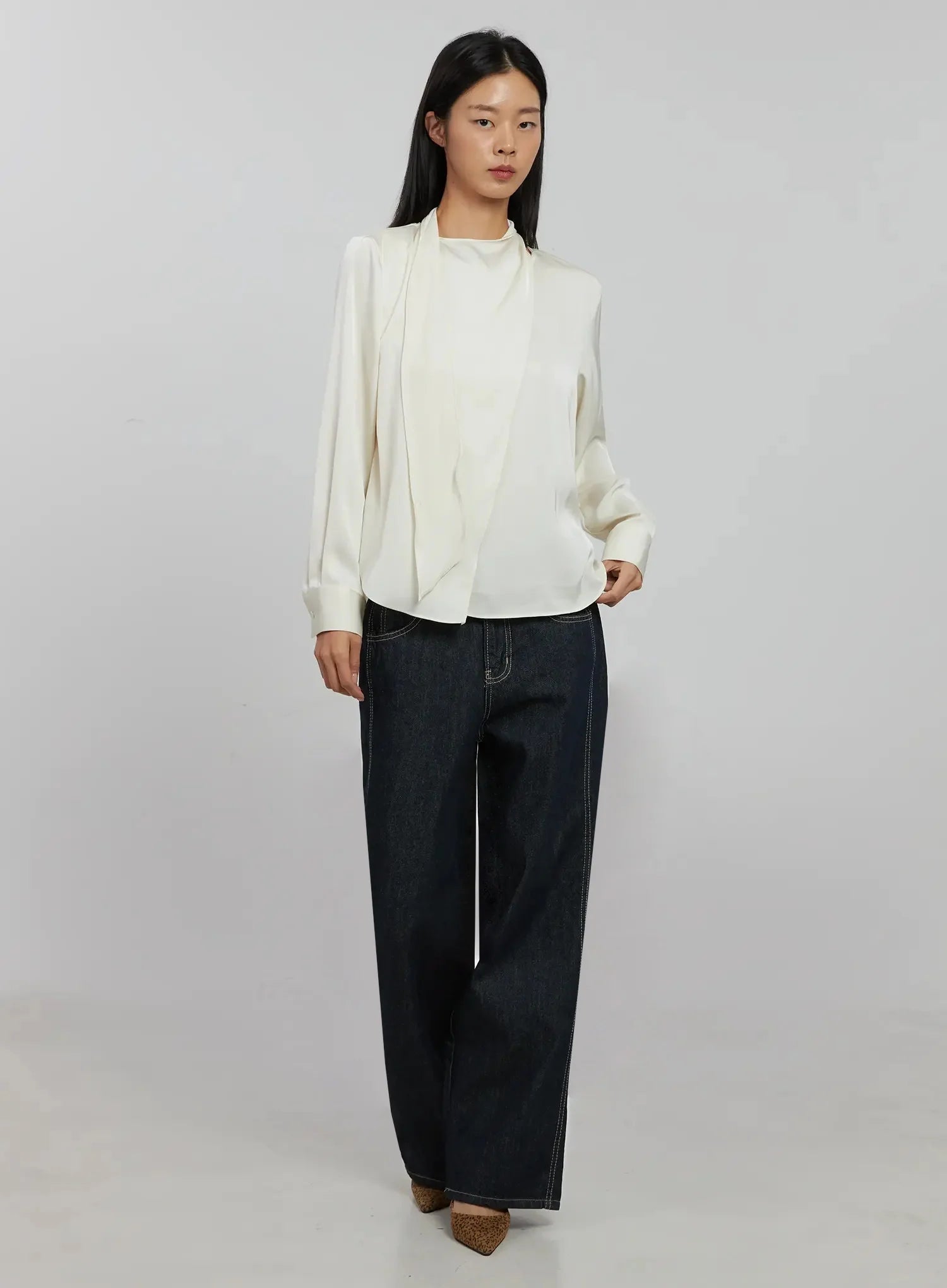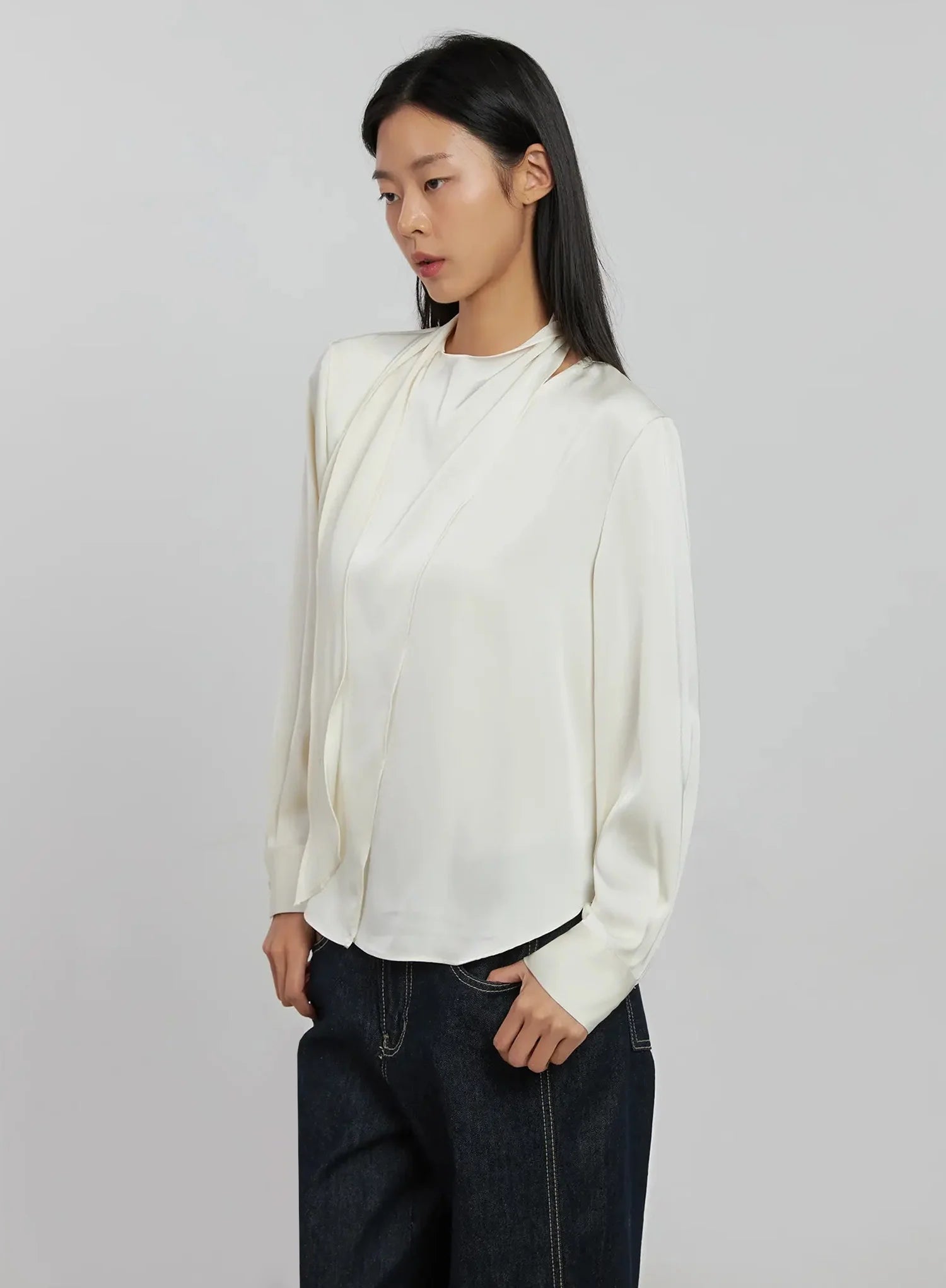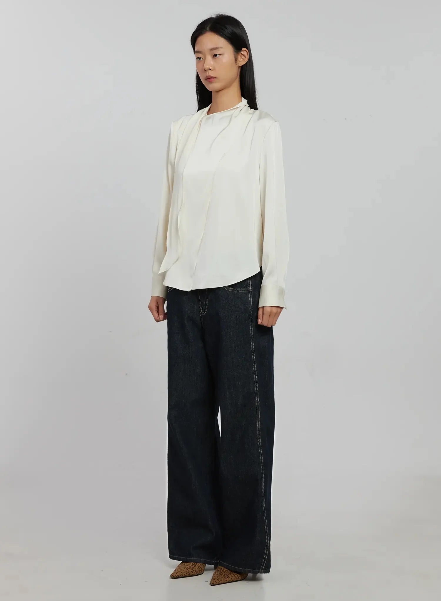 Flowy Neck Tie Blouse IJ509