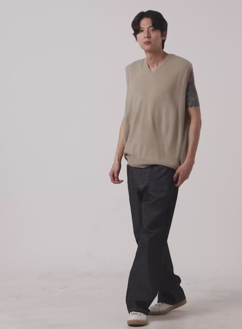 Men's Classic V-Neck Knit Vest (Beige) IY424