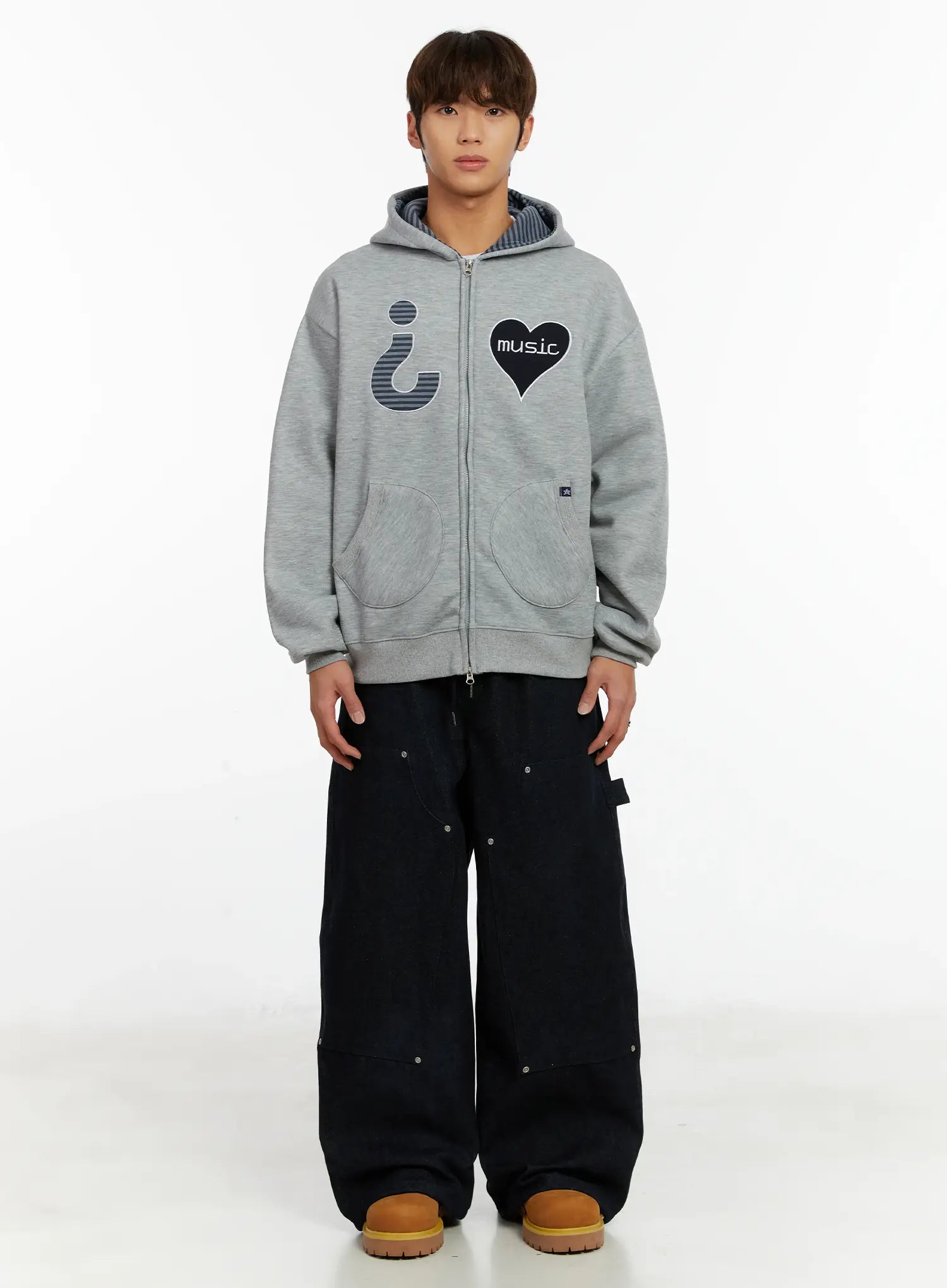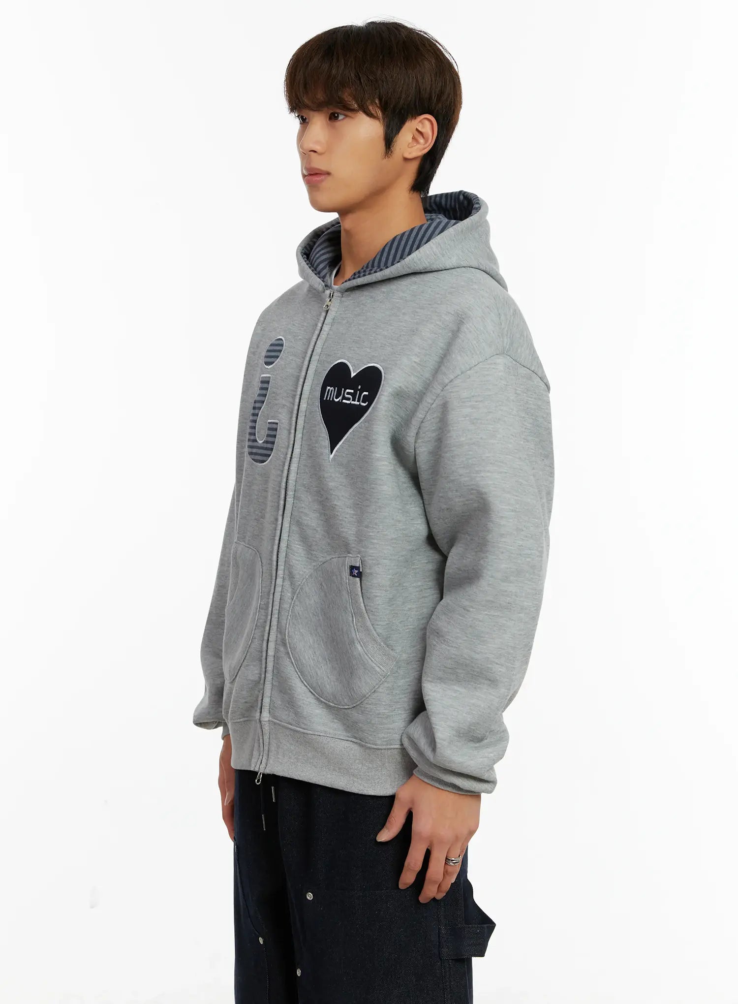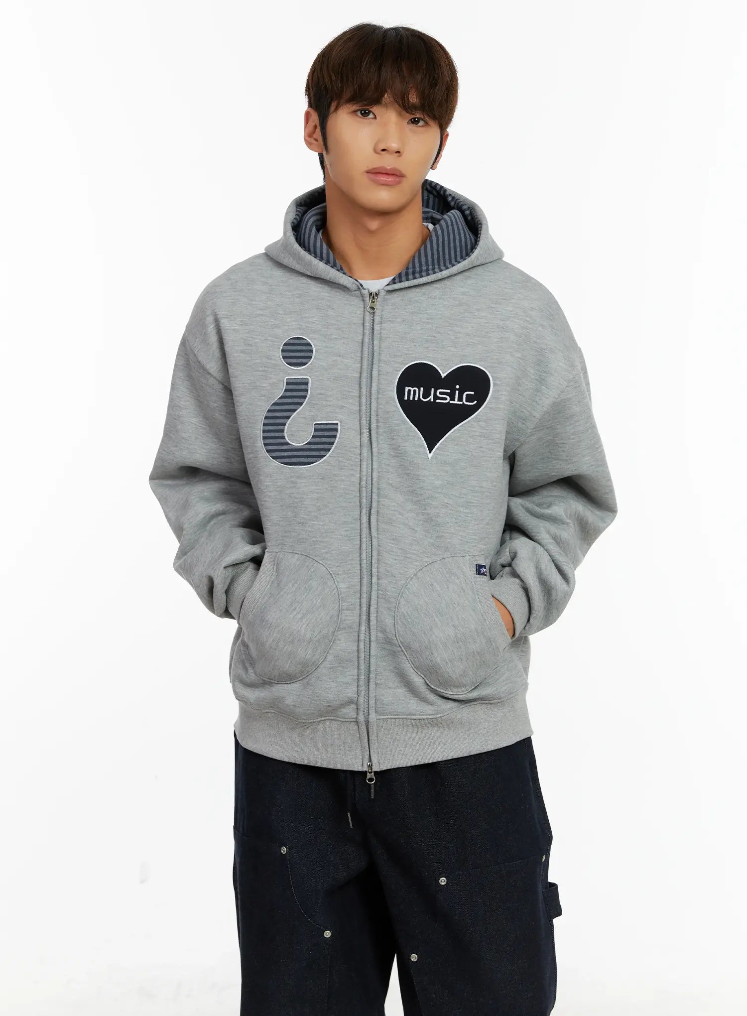 Men's Heart Patch Fleece Hoodie ID523